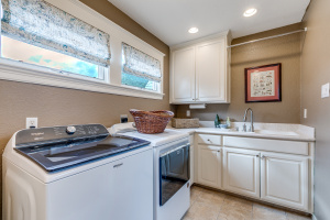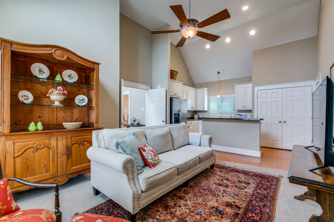 Rebuilt oversized 2‑car garage includes vaulted ceilings and an 841‑sq‑ft full apartment above with living area, full kitchen, large bedroom all with high ceilings, and bath with double vanities. Laundry for apartment in the garage. Gated driveway, parking pad, and low‑maintenance yard. Main house is 3,183 sq ft per appraisal.
