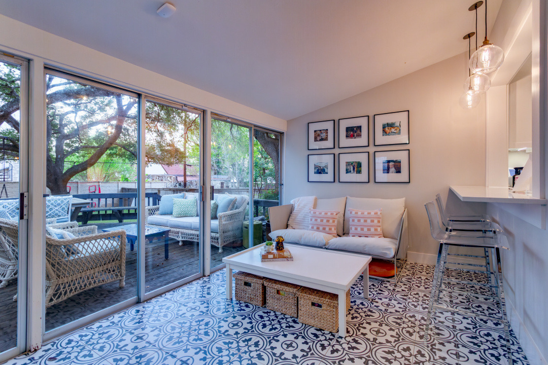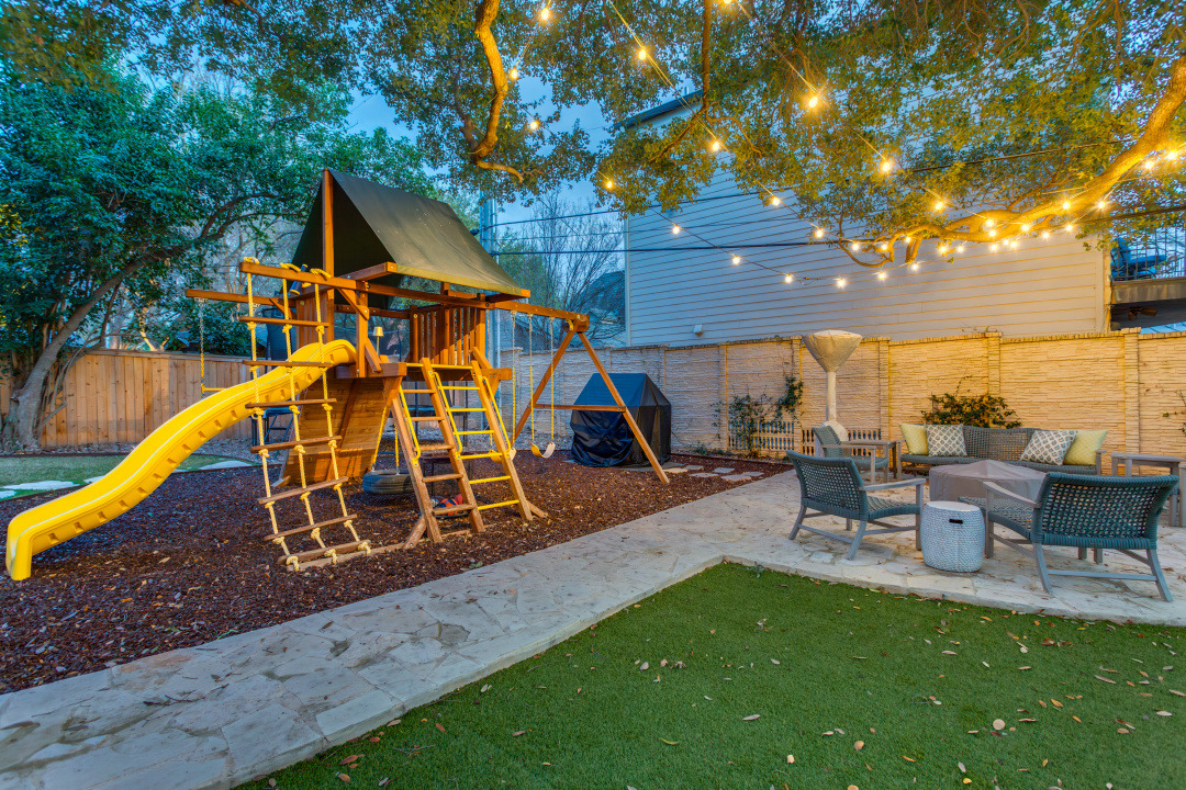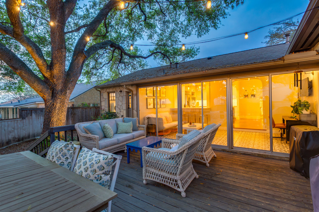 Beautifully updated home in OLMOS PARK. In 2017 the House was totally renovated by Adapt Architecture including replacement of most of the windows, updated kitchen, baths, butler's pantry, and laundry room with new HVAC, new electrical, new plumbing and lighting! Spacious living room with fireplace; dining room opens up to the island kitchen; den offers tile floor and views to the fabulous backyard with large deck & gorgeous mature oak trees along with rubber mulch and high-end artificial turf added in 2024. New landscape, stone front porch, walkway and seating area also added in 2024!