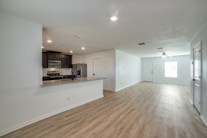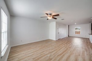 The main level features a seamless flow between the kitchen, dining, and living areas, while all bedrooms are privately located upstairs, including a spacious primary suite with walk-in closet. The backyard includes full privacy fencing and room for outdoor use, future additions, or landscaping projects.