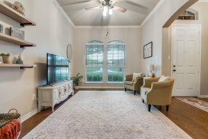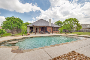 Just off the entry, a versatile second living space provides the perfect option for a formal dining area, home office, or additional sitting room. Outdoors, the property truly shines with a spacious backyard designed for relaxation and entertaining. Enjoy the newer swimming pool complete with a tanning ledge and built-in seating area with table, ideal for soaking up the sun or cooling off. A covered patio and extended open patio slab, along with a generous decking area, offer plenty of room for outdoor living and gatherings.