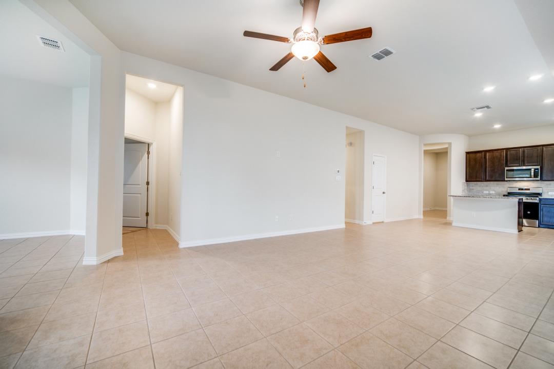 Boerne Schools! Lovely single story home in Champion Heights close to Champion High School and Herff Elementary! Beautiful front and back covered porches. 4 bedrooms plus 2 full baths. 2 living areas. Open floor plan with ceramic tile except in bedrooms. Master bedroom with ceiling fan, spacious master closet, and en-suite bath with separate garden tub and double vanities. Pretty kitchen with ample cabinets, gas cooking, stainless steel appliances, large pantry, and island. Sprinkler system. Ready for immediate move in. No smoking and no cats.