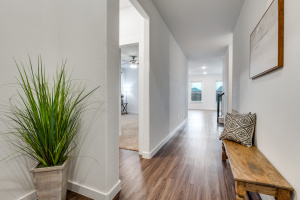 Located in the highly sought-after Seventeen Lakes community, this like-new, move-in ready home offers exceptional value with a flexible layout, thoughtful upgrades, and a peaceful setting. With no neighbors directly behind, the home backs to a quiet greenbelt, creating a sense of privacy that’s hard to find. The main living space is bright and open, making it ideal for entertaining as well as quiet mornings at home. The kitchen is a true focal point, featuring white quartz countertops, a five-burner gas range, subway tile backsplash, and plenty of storage and counter space. Luxury vinyl plank flooring flows through most of the main level, giving the home a clean, modern look that’s also low maintenance. Features include an oversized laundry room, offering extra space for a freezer or additional pantry storage. The owner’s suite is tucked away for privacy and provides a calm, comfortable retreat at the end of the day. Upstairs, three secondary bedrooms each feature exceptionally large walk-in closets, and the spacious game room offers incredible versatility. It works great as a secondary living area, media room, or dedicated home office, depending on your needs. Storage is abundant throughout the home, with two attic spaces including a large walk-in attic and an additional pull-down attic, making it easy to stay organized. Out back, the spacious backyard and covered patio provide plenty of room to relax, entertain, garden, or create your own outdoor oasis. Smart home features like an Ecobee thermostat and Brilliant system add comfort, efficiency, and everyday convenience. The home is located in Northwest ISD, currently zoned to Cox Elementary and Byron Nelson High School, and is just a short walk to community trails, lakes, and one of the neighborhood pools. Seventeen Lakes residents enjoy two pools, splash pad, private lakes, walking paths, and community events — all in a neighborhood that truly feels like home.