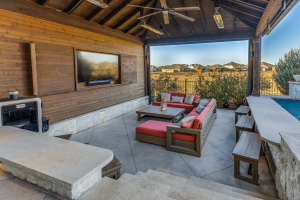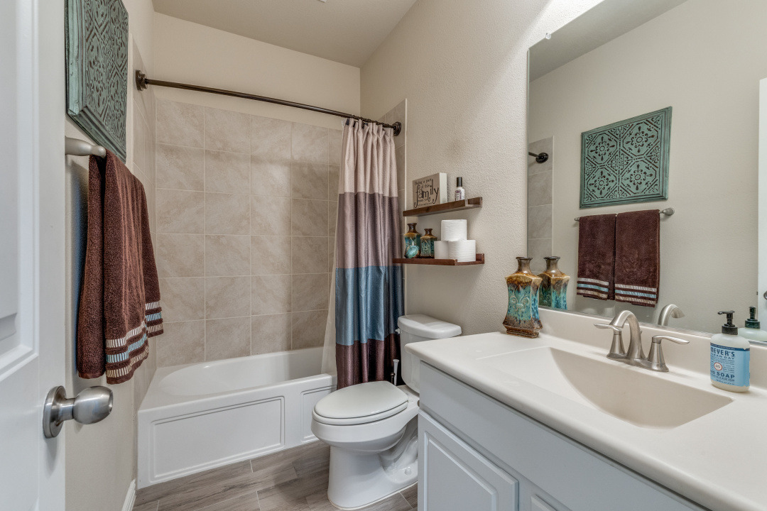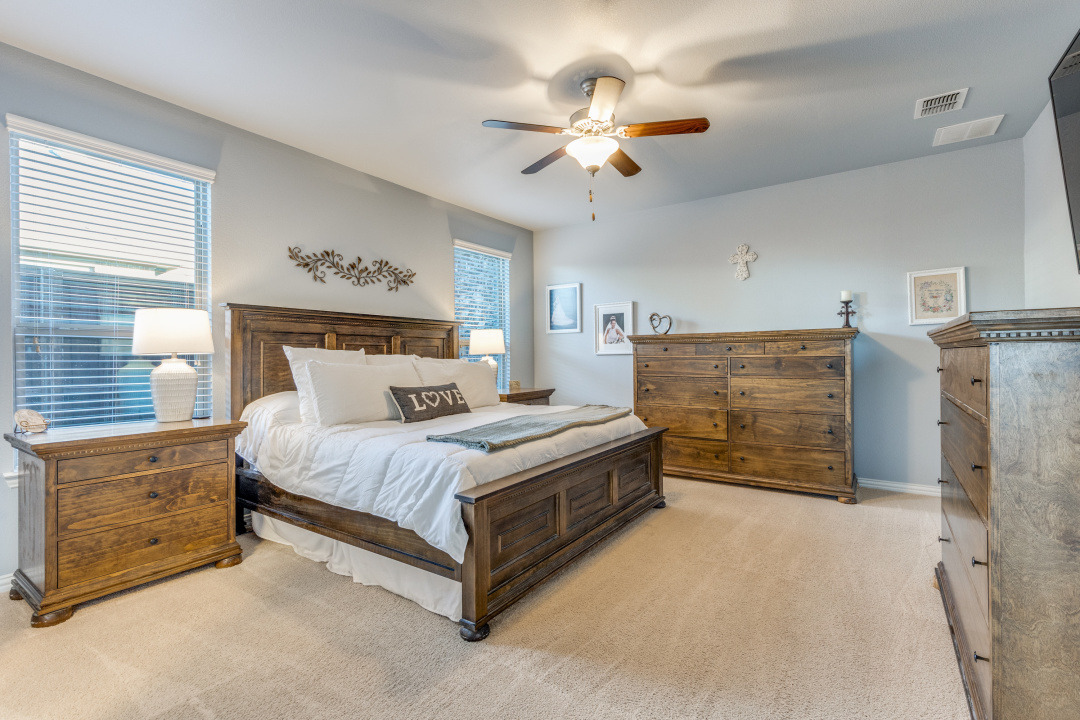 This exceptional 4-bedroom, 3–full bath home with a 3-car garage offers a thoughtfully designed floorplan and high-end custom features throughout including a resort-style backyard. The first level includes the spacious primary suite along with an additional bedroom and full bath—ideal for guests or multigenerational living—as well as a large, private office featuring custom built-in shelves and cabinetry. At the heart of the home, the expansive open-concept kitchen and living area impress with abundant counter space, extensive cabinetry, and designer touches. Highlights include a custom butler’s pantry and bar nook, plus additional custom built-ins in the laundry room for optimal functionality and storage. Upstairs, you’ll find two generously sized bedrooms connected by a Jack-and-Jill bath, along with a large bonus room perfect for a game room, media space, or second living area. Step outside to a true resort-style backyard designed for entertaining and relaxation. Enjoy a custom gunite pool and spa with swim-up bar and water bowl features, complemented by an incredible outdoor living area. The rock outdoor kitchen includes a Kamado Joe grill, built-in griddle, stainless steel access door and drawers, built-in TV space, motorized shades, and commercial-grade heaters. The property offers outstanding privacy with an 8-foot board-on-board cedar fence and backs to a large greenbelt with convenient gate access. Extensive low-voltage lighting and a Sonoray sound system complete this outdoor oasis. This home is also enhanced with energy-efficient and comfort-focused upgrades, including added R60 attic insulation, a whole-home dehumidifier, an insulated garage attic, and a mini-split AC system in the garage—ideal for climate control, hobbies, or a workshop. Take it all in as this property is one of a kind seamlessly blending luxury, comfort, and functionality—perfect for everyday living and unforgettable entertaining.