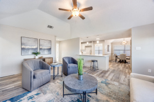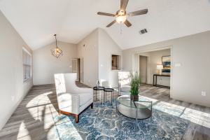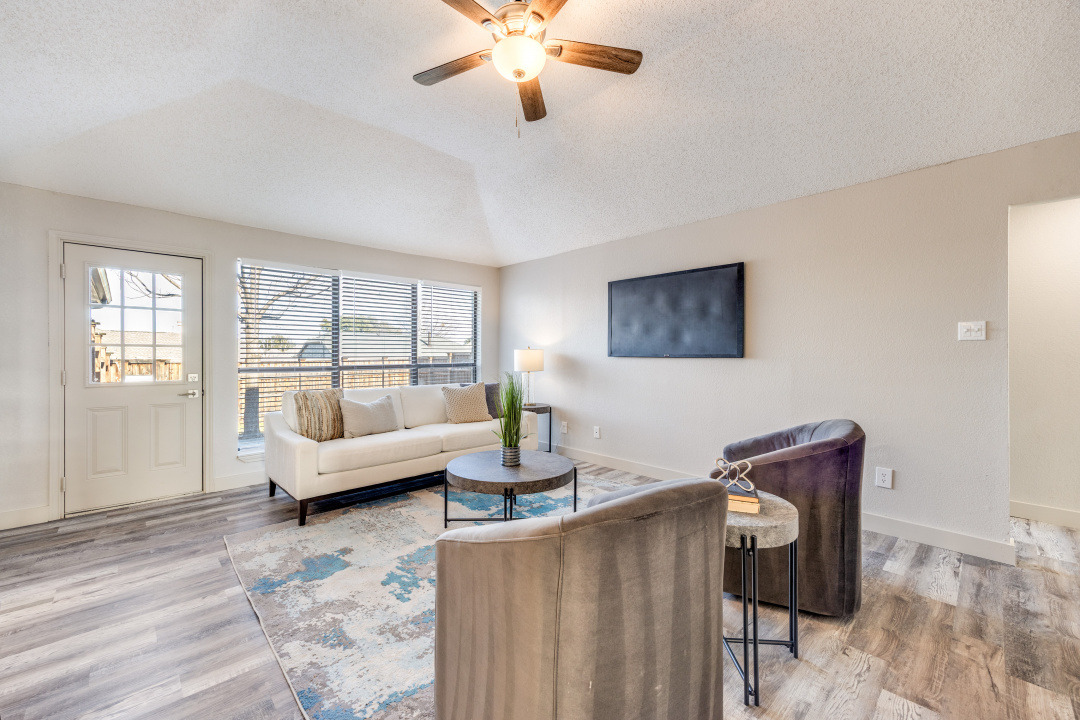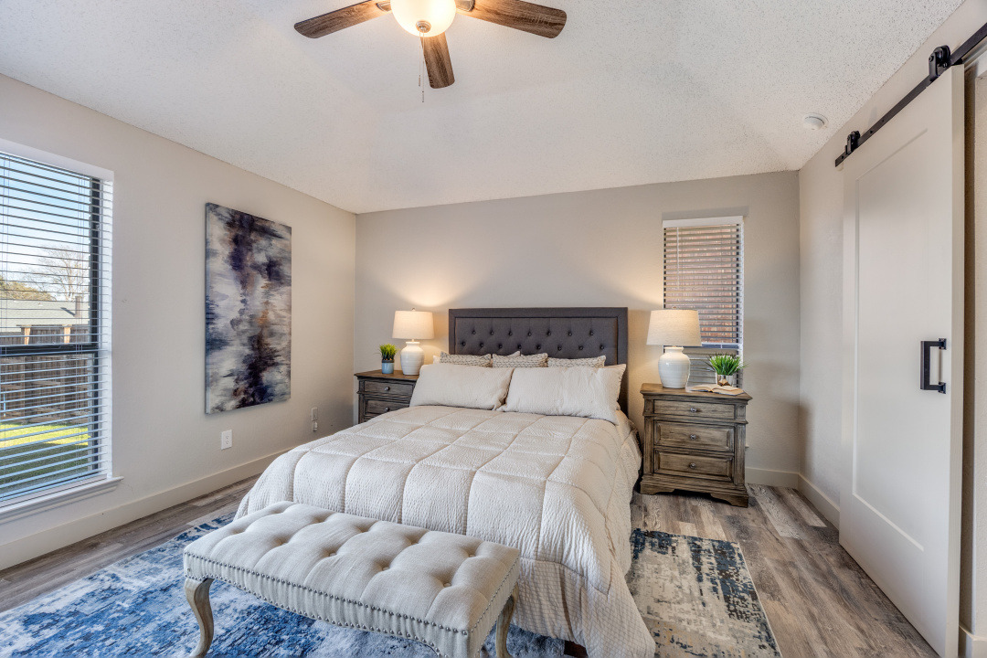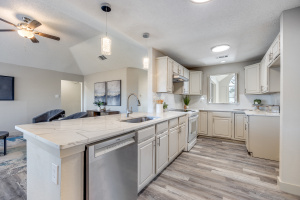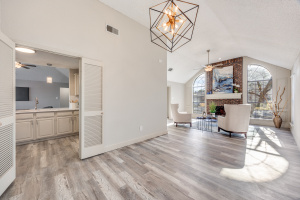 Welcome home to this completely remodeled gem located in an established neighborhood of Lewisville. Offering 3 bedrooms, 2 bathrooms, 2 living areas, and 2 dining areas, this thoughtfully updated home blends timeless character with today’s modern finishes and functionality. Step into the inviting main living room featuring vaulted ceilings, a ceiling fan, and a stunning floor-to-ceiling brick fireplace, creating the perfect focal point for cozy evenings or entertaining guests. New luxury vinyl plank flooring flows throughout the home, complemented by new lighting, fresh paint, new plumbing, and a new front door. The fully remodeled kitchen shines with quartz countertops, stylish tile backsplash, painted cabinets with updated hardware, a stainless dishwasher, and a cabinet pantry, making it both beautiful and practical. Both bathrooms have been completely renovated with quartz countertops and chic ceramic tile, offering a clean, modern feel. Major system updates provide peace of mind, including a new roof, new HVAC system, and completed foundation work, a rare find at this price point. Enjoy a private backyard with an 8-ft privacy fence and open patio, perfect for relaxing or entertaining. Conveniently located near shopping, dining, schools, and major highways, this move-in ready home is the perfect blend of comfort, style, and value. Schedule your private showing today and experience all this Lewisville home has to offer.