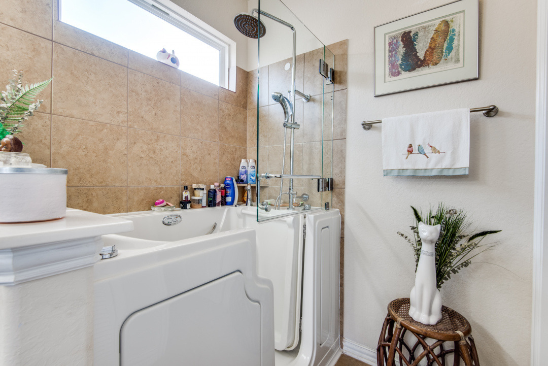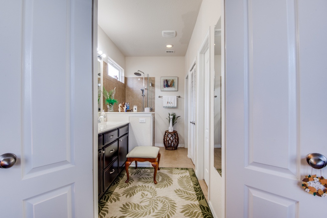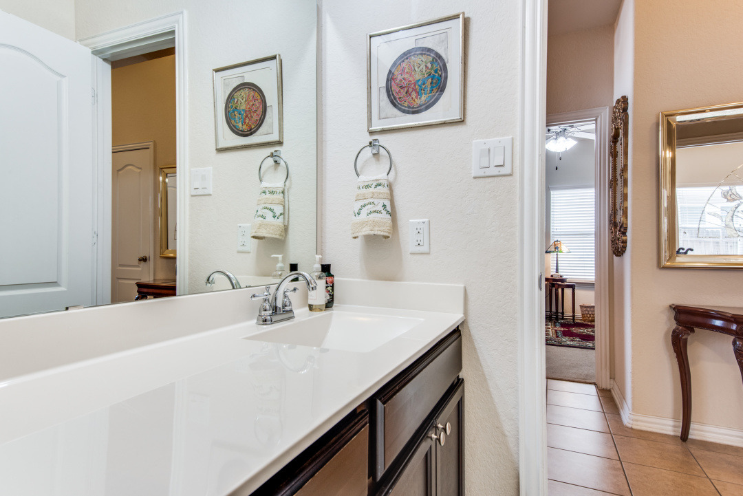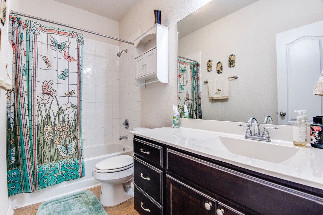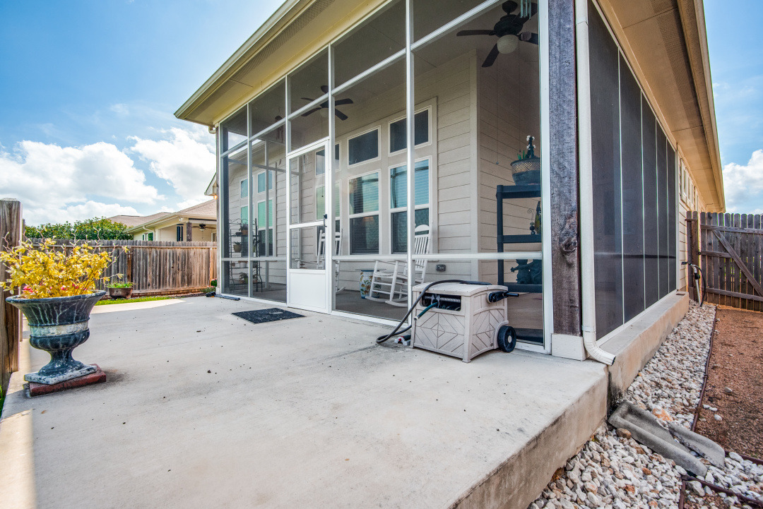 Beautifully maintained jewel in Creekside Gardens ~ Conveniently located near IKEA, Randolph AFB, The Forum Shopping area, Costco, and much more yet, tucked away for tranquil living ~ This home features tile in all areas except bedrooms ~ Open floorpan great for entertaining, Spacious study, Large Family Room with tall windows for natural lighting ~ The Kitchen is adorned with 42" Cabinets, the Solid Wood Island is movable ~ All bedrooms on one level and spaced apart for privacy ~ Seller installed Screened-in-Patio and extra concrete patio. Backyard features established lush grass, mature flowering bushes, sprinkler system, and rear gate. ~ Certain items in home are for sale.