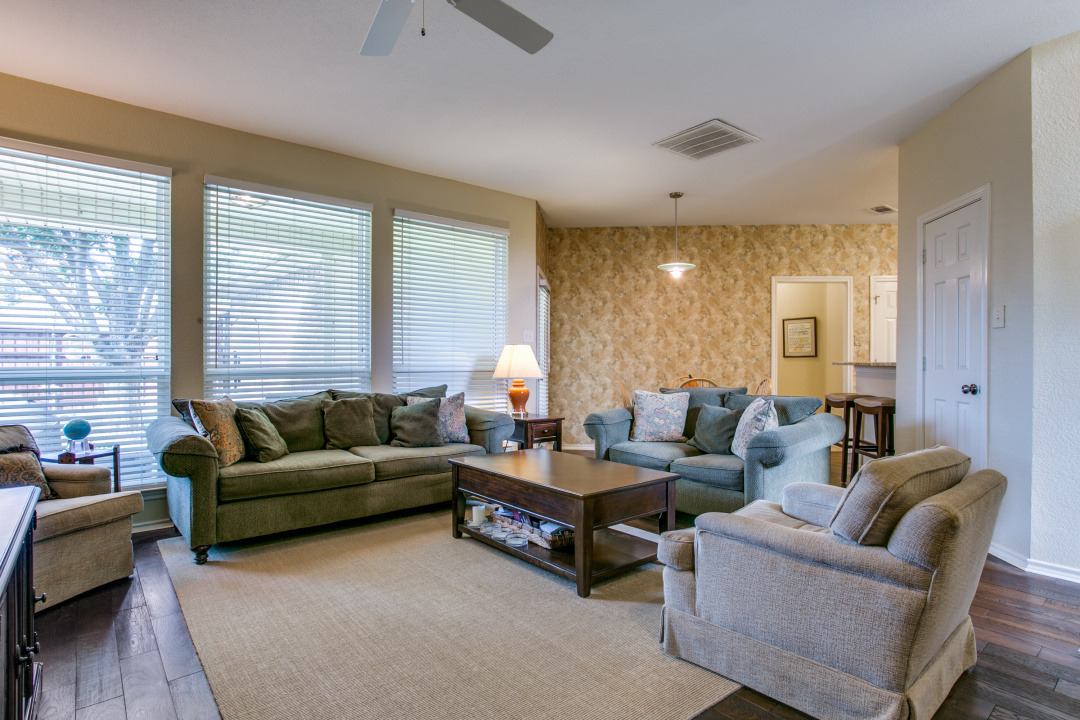 Charming 3 Bedroom Home on a quiet cul de sac street, with great proximity to Dallas North Tollway & George Bush Turnpike. An open concept plan with neutral colors and elegant hardwoods throughout the first level. The updated kitchen features granite countertops, a new backsplash, new sink, new faucet, freshly painted cabinets, and all stainless steel appliances. The cozy family room has a see-through fireplace, tall windows with views of the oversized backyard, and a covered patio, along with an 8 ft board on board fence. The spacious master suite features a large walk-in closet, a fully updated master bath including dual sinks, a seamless glass shower & a separate jetted tub. The house also features all-new energy-efficient windows. All of this conveniently located to shopping, restaurants, and entertainment.