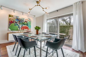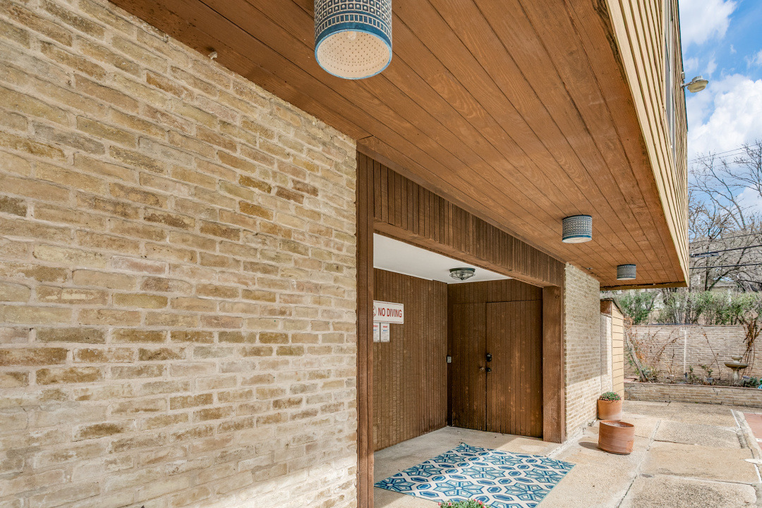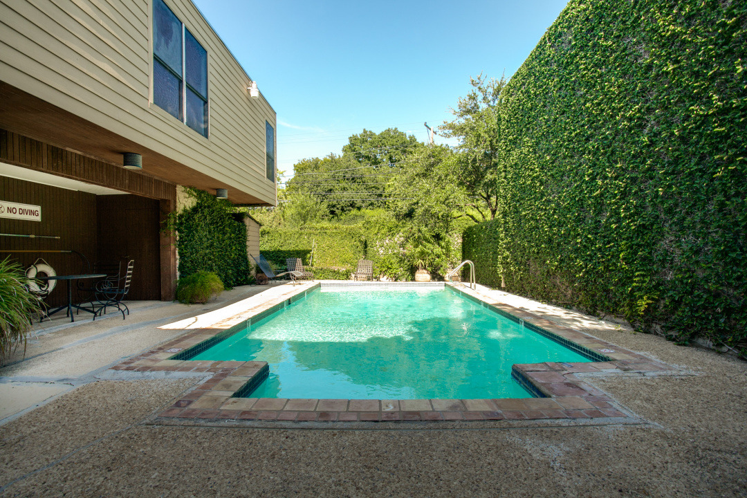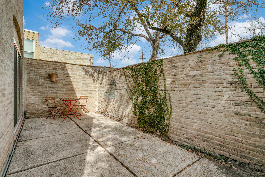 An iconic mid-century modern residence designed by Chris Carson, FAIA of O'Neil Ford-led firm Ford, Carson & Powell, honored with the Texas Society of Architects' Distinguished Design Award. Privately positioned beside the pool yet fully independent, this rare townhome offers no shared walls and multiple expansive , sundrenched patios. Creating your own urban retreat. Authentic Saltillo tile grounds the first level, while solid oak floors and curated designer finishes elevate the second level, The Carrara marble kitchen stuns with Bosch appliances and Moen fixtures, blending timeless style with modern ease. Effortless lock and leave living for the design obsessed and always on the go home owner. This home is just steps from Central Market, UIW, museums and Alamo Heights most beloved dining and culture. Located in the heart of Alamo Heights and AHISD. Come experience a true mid-century masterpiece today.