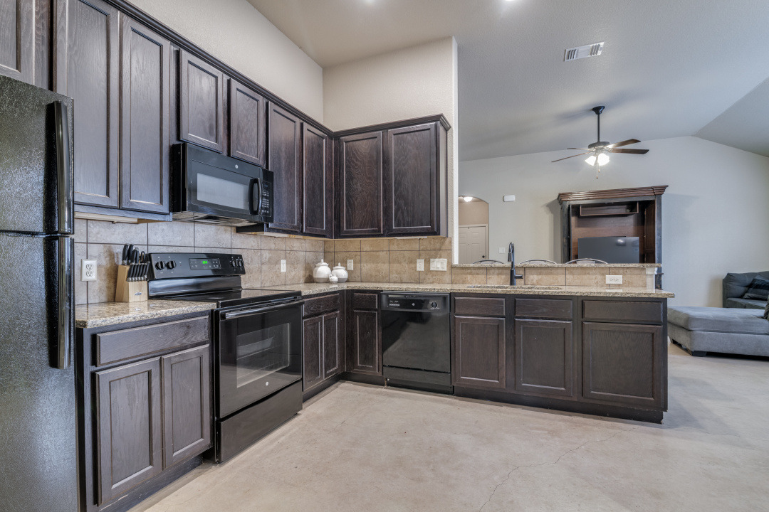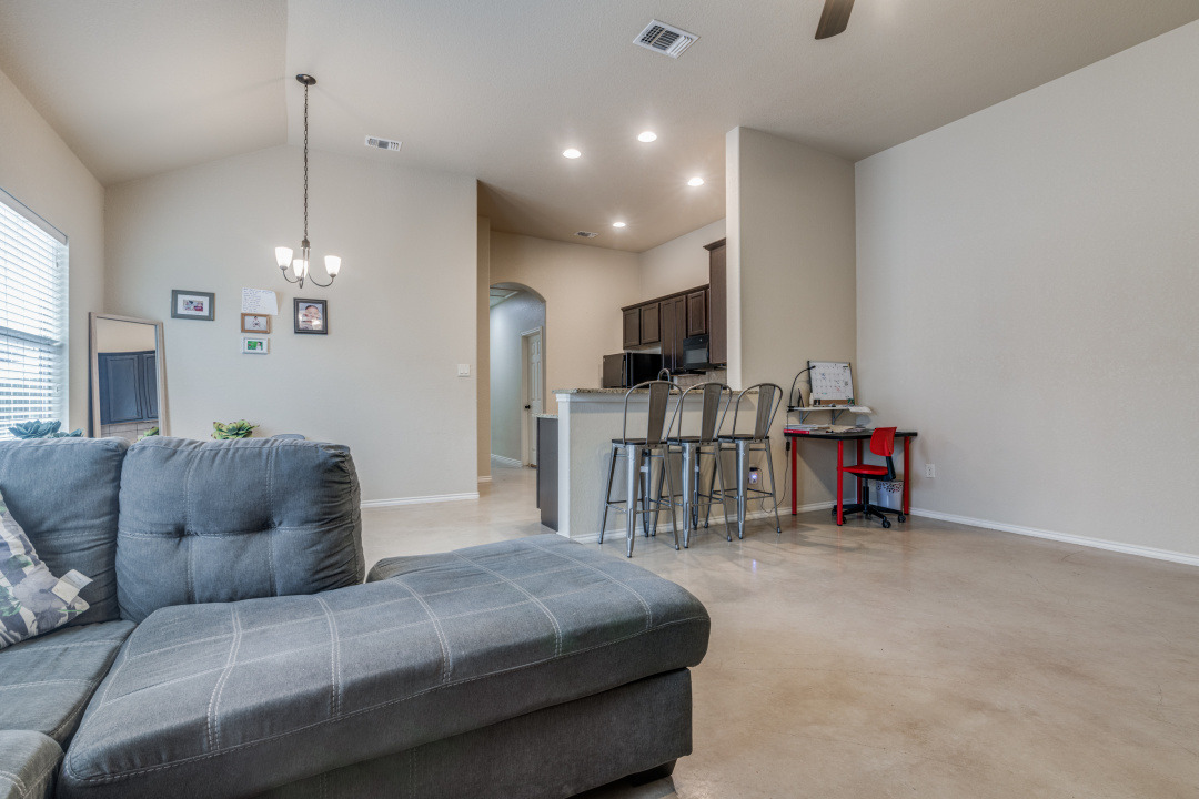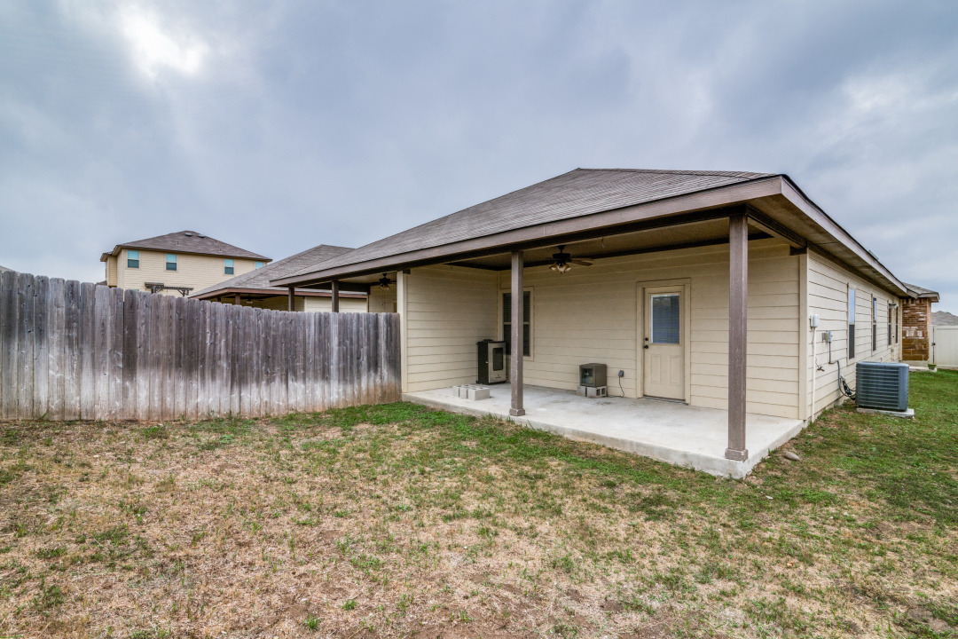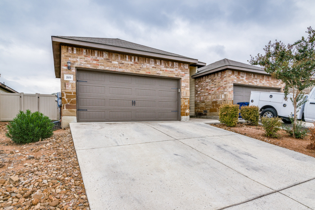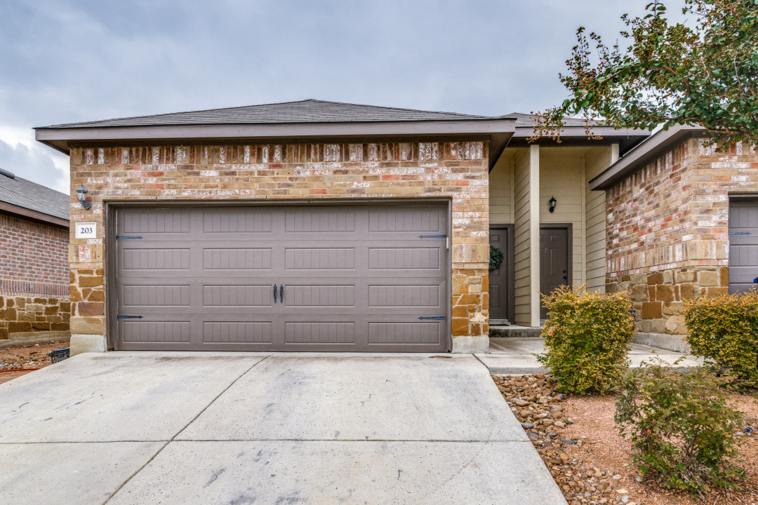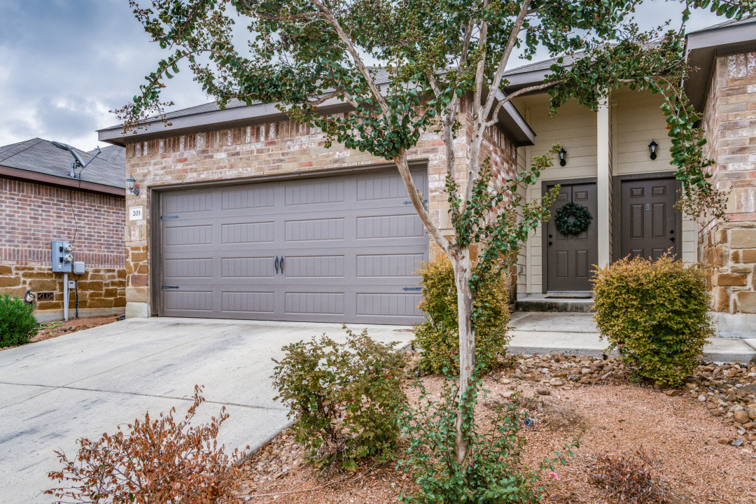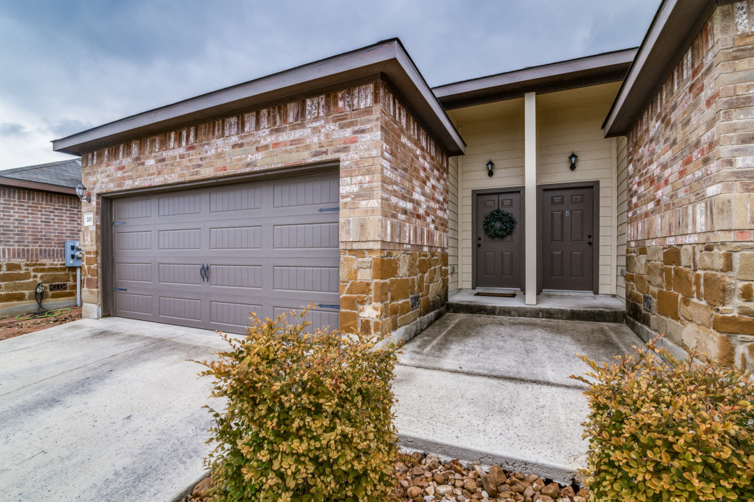 Attention, astute investors! Here's your golden opportunity to secure a prime income-producing duplex in New Braunfels. This well-maintained property, leased on both sides, is poised to be a lucrative addition to your real estate portfolio. Featuring a two-car garage and separate entrances for each unit, this duplex is designed for convenience and functionality. Each side offers a well-organized layout with 3 bedrooms and 2 full bathrooms, providing ideal living spaces for tenants. Step inside to find stained concrete flooring, high ceilings, and abundant natural light that fills the open concept floor plan. The spacious living room seamlessly blends into the kitchen and dining area, and a breakfast bar creates a welcoming divide. Each kitchen is equipped with granite countertops, dark wood cabinetry, tile backsplash, and under-cabinet lighting, combining practicality with visual appeal. The primary retreat in each unit stands out, boasting a tray ceiling, stained concrete flooring, and an ensuite bath featuring a dual vanity, a shower/tub combo, and a generously sized walk-in closet. The secondary bedrooms are spacious and well-suited for comfortable living. Both units benefit from private yard spaces and covered back patios, adding value for renters and potentially increasing long-term tenant retention. Conveniently situated with easy access to I-35 and downtown New Braunfels, this duplex is a highly desirable living option. Whether you're seeking an income-generating property or a multigenerational living solution, this duplex provides a versatile and welcoming space in a fantastic neighborhood.