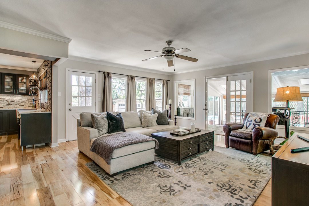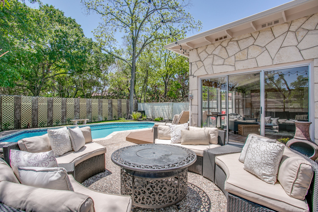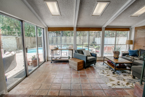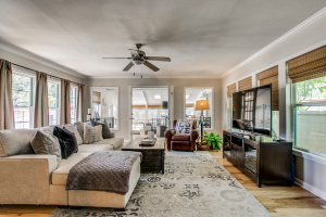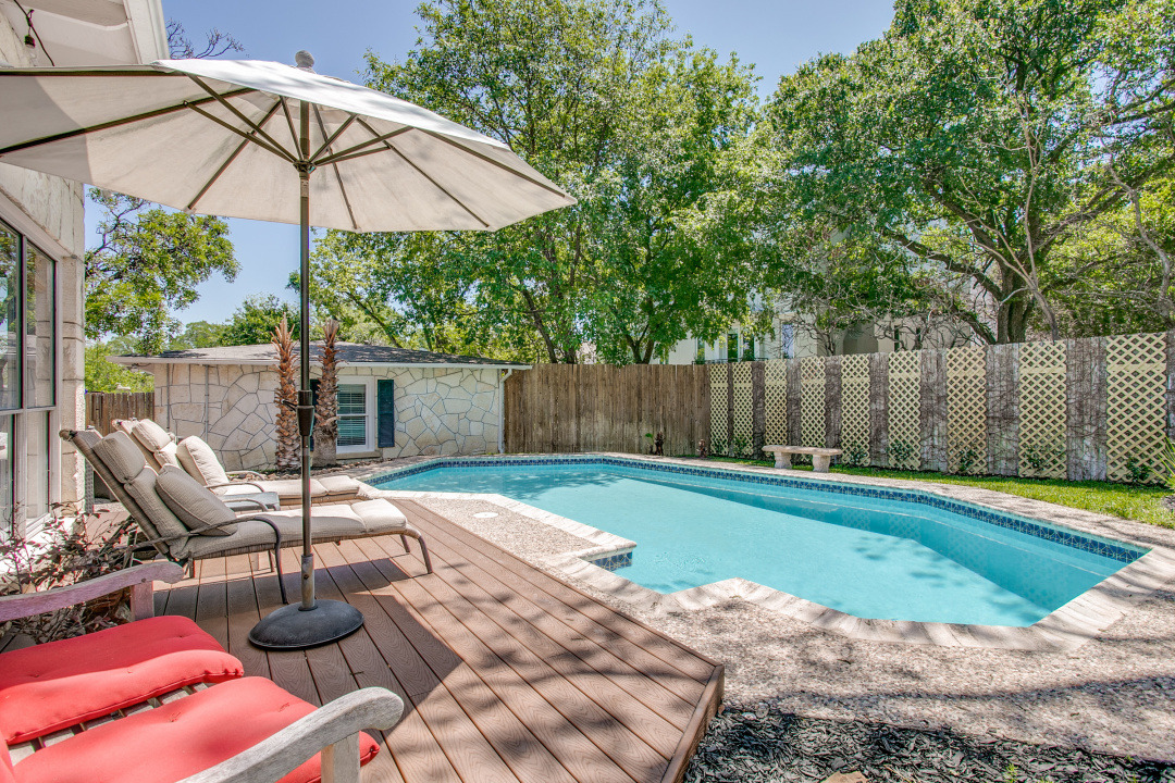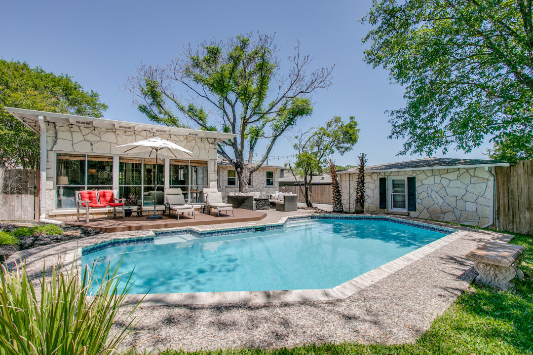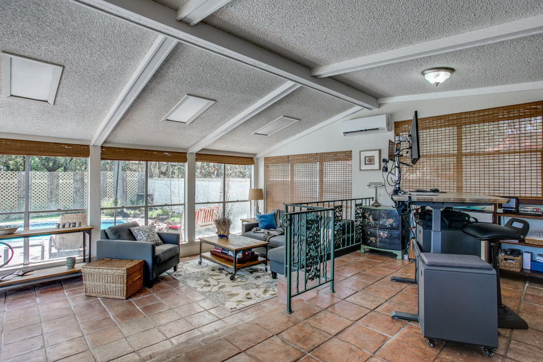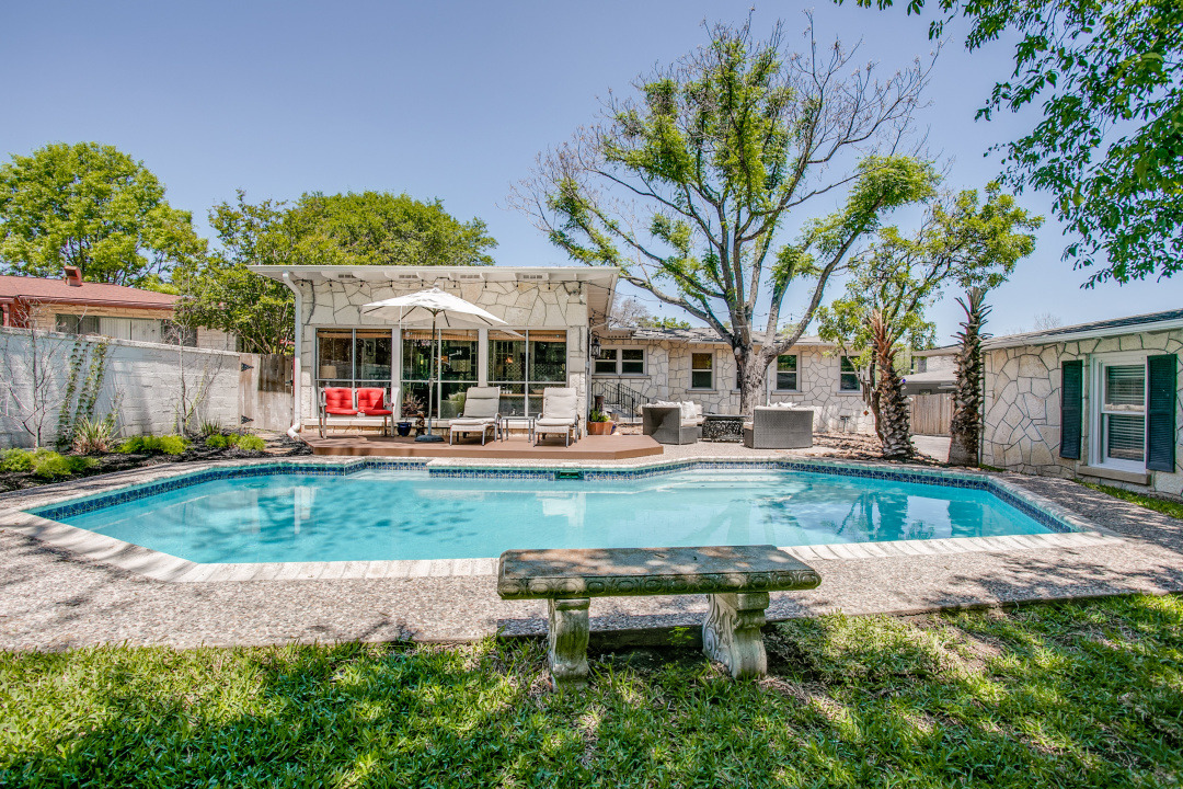 Beautiful wood floors throughout with tile in the Florida room. Open/bright with tons of natural light. Living room with a rock mantle fireplace. Living flows into the spacious dining room. Large custom kitchen with gas range. Wonderful second living area with bookcase. Nice size bedrooms and impressive remodeled bathrooms. Florida room with ductless HVAC can be a third living area, office or workout area. It overlooks the pool and outdoor entertaining area. Secured driveway with gate leads to a detached two car stone garage with an extra storage room. Wonderfully landscaped with outdoor lighting. All the benefits of living in Monte Vista - close to Trinity University, Landa Library with playground, 281 and downtown.