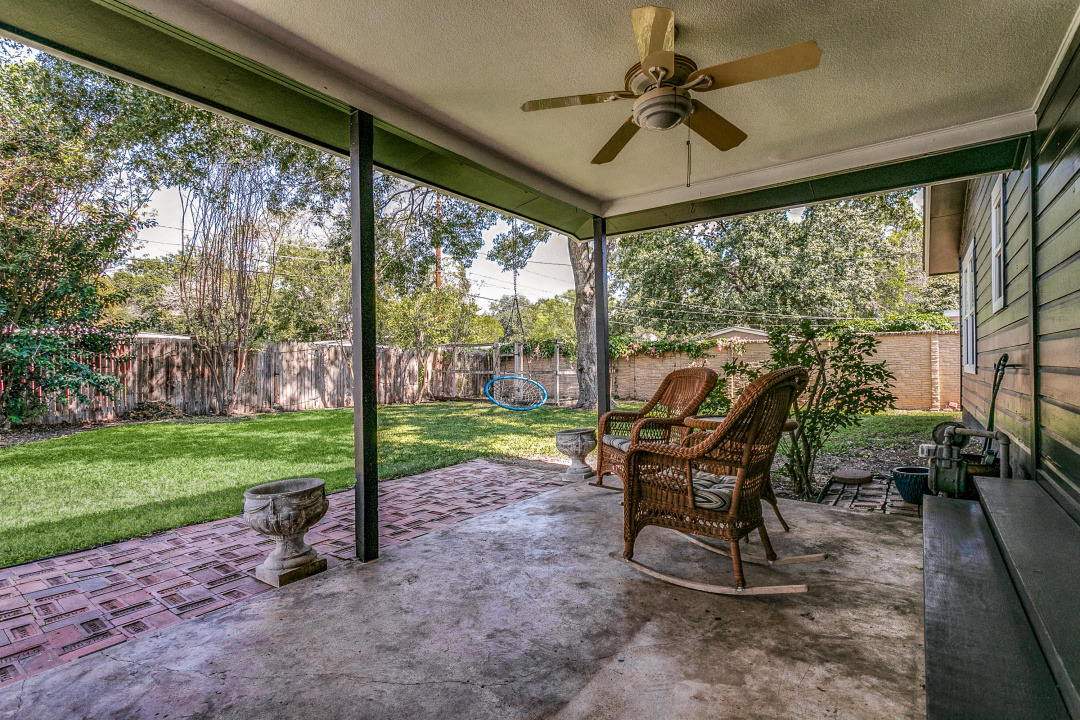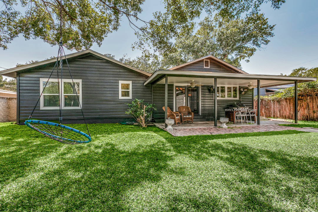 Each of the four bedrooms offers ample natural light. Outside, the covered back patio is an ideal spot for al fresco dining or relaxing with a morning coffee, overlooking a private backyard that invites outdoor living and play.