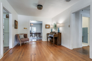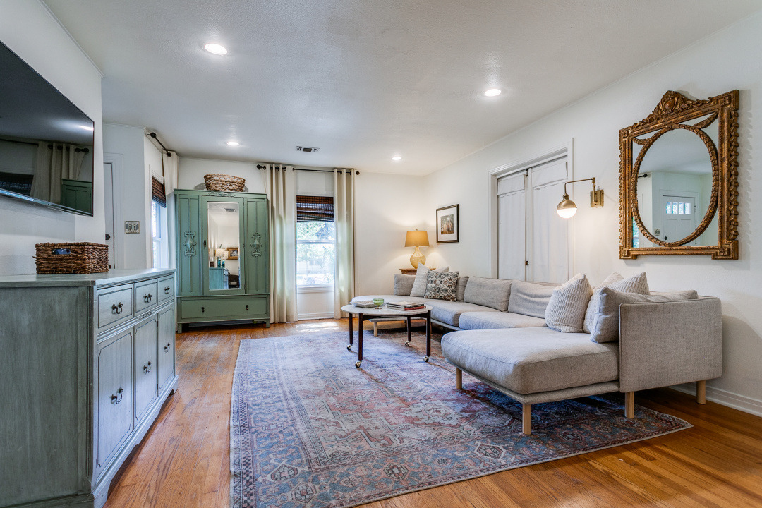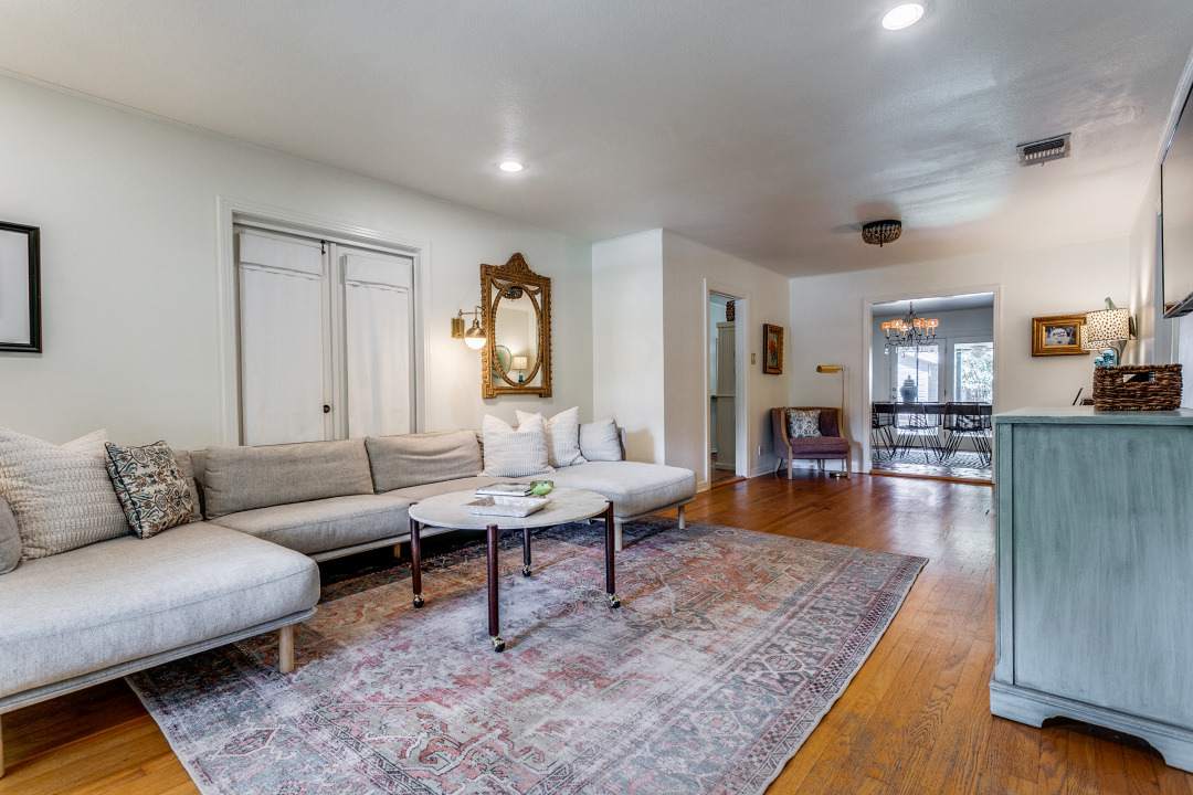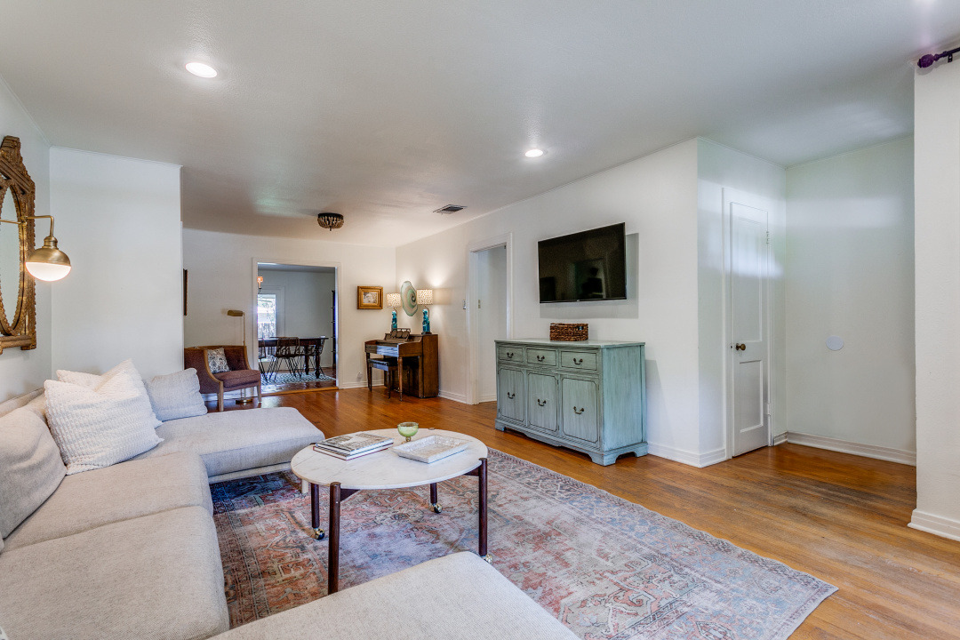 This charming 4-bedroom house, built in 1947, exudes character and warmth with its hardwood floors and Saltillo tile. As you step inside, you’re greeted by a spacious living area that connects to a dining space, perfect for entertaining family and friends. The kitchen features modern amenities while maintaining its vintage charm.