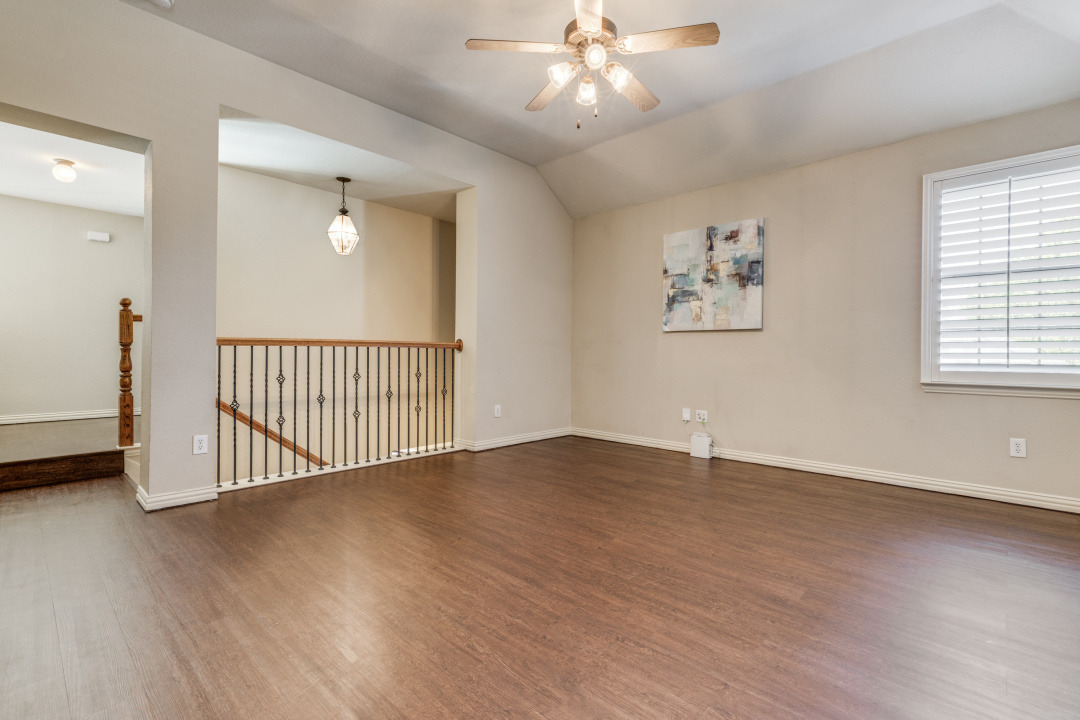 Wood floors through the elegantly designed downstairs. Bright light through the Vaulted ceilings and plantation shutters. Updated kitchen has granite counters and island, 42in cabinets, and stone backsplash. Enjoy your large private backyard with a board-on-board fence. Big game room with three spacious bedrooms on the 2nd floor. . 2022 roof and Fresh Sod. Garage with insulated designer garage doors adds to the home's perfect curl appeal