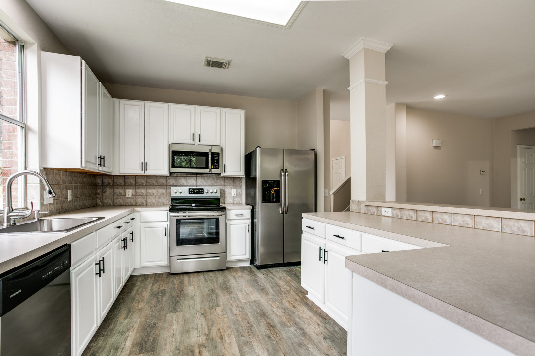 Welcome home to this beautifully updated property in the small, quiet neighborhood of the Park at Woodland Oaks. From fresh interior and exterior paint, to new wood like plank vinyl flooring and renovated baths and upgraded light fixtures, this home sparkles and is MOVE-IN READY! Enjoy the relaxing rear veranda that overlooks a wooded greenbelt for the ultimate in privacy. Spacious and inviting, the floorplan is great for entertaining or casual family living. The primary suite is located on the first floor, with 3 additional bedrooms and a game/media room upstairs. The bright kitchen, with white cabinetry and recent appliances, is open to the family room with fireplace. Close to the 2 acre community park with playscape, basketball and picnic areas to enjoy the outdoors. Easy access to FM 3009, I-35, Randolph AFB and highly acclaimed Schertz-Cibolo-Universal City Schools.