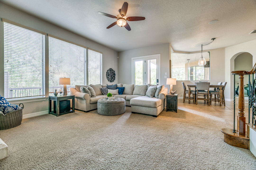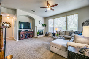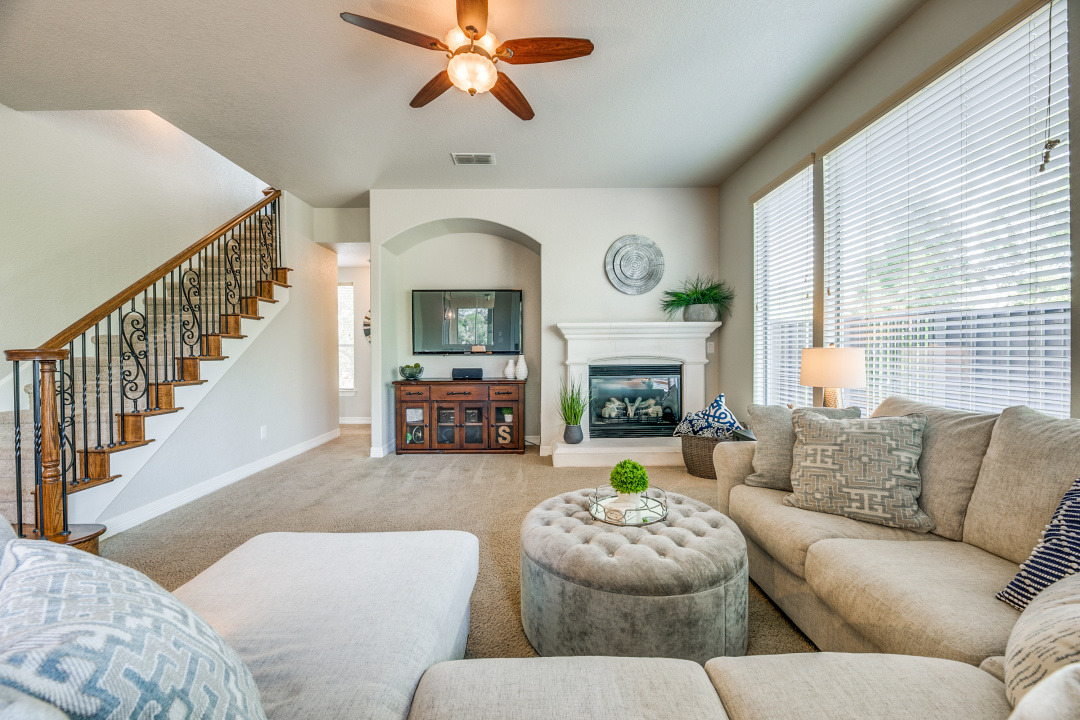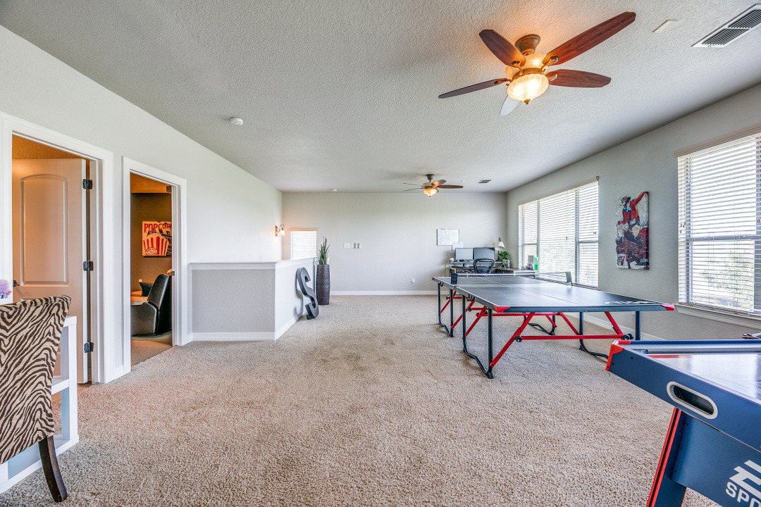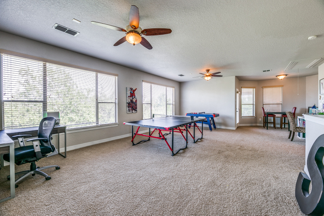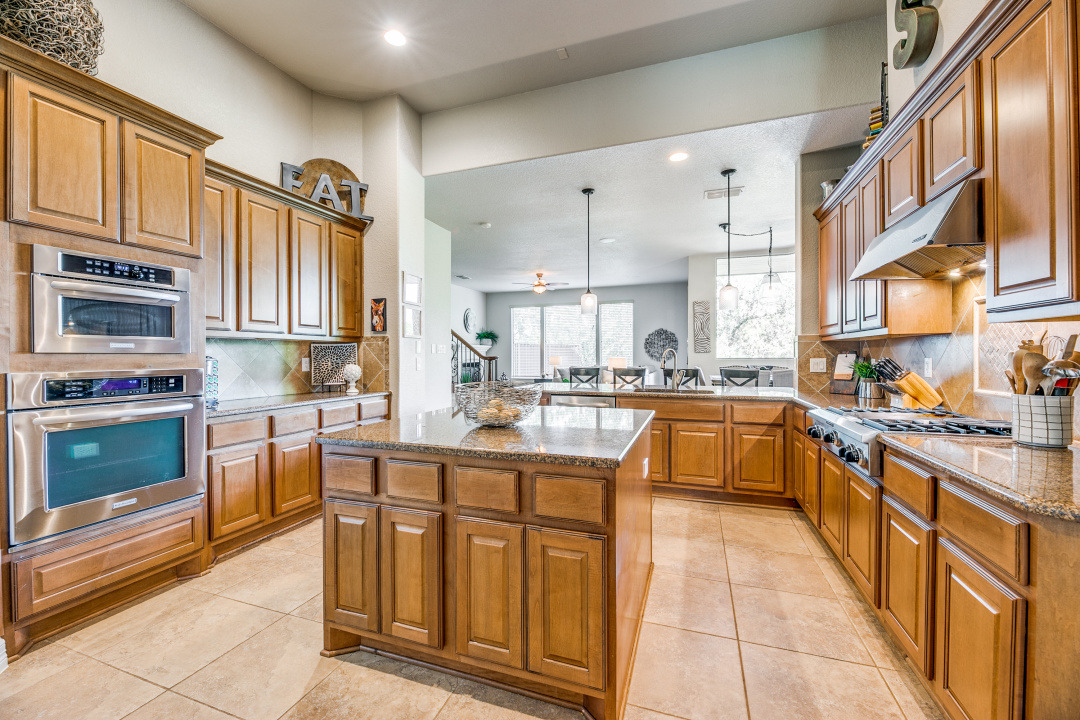 Gorgeous home on lush .51 acre lot. This home has it all: gourmet kitchen, 2 living & 2 dining areas, private office/study, 4 bedrooms & 4 baths, game room, media room, large covered patio, upstairs covered balcony, open deck and spacious yard. The island kitchen has granite counters, SS appliances, gas cooking and opens to the family room with fireplace. Primary suite features multiple closets and ensuite spa bath with large walk-in shower, separate soaking tub and double vanity.