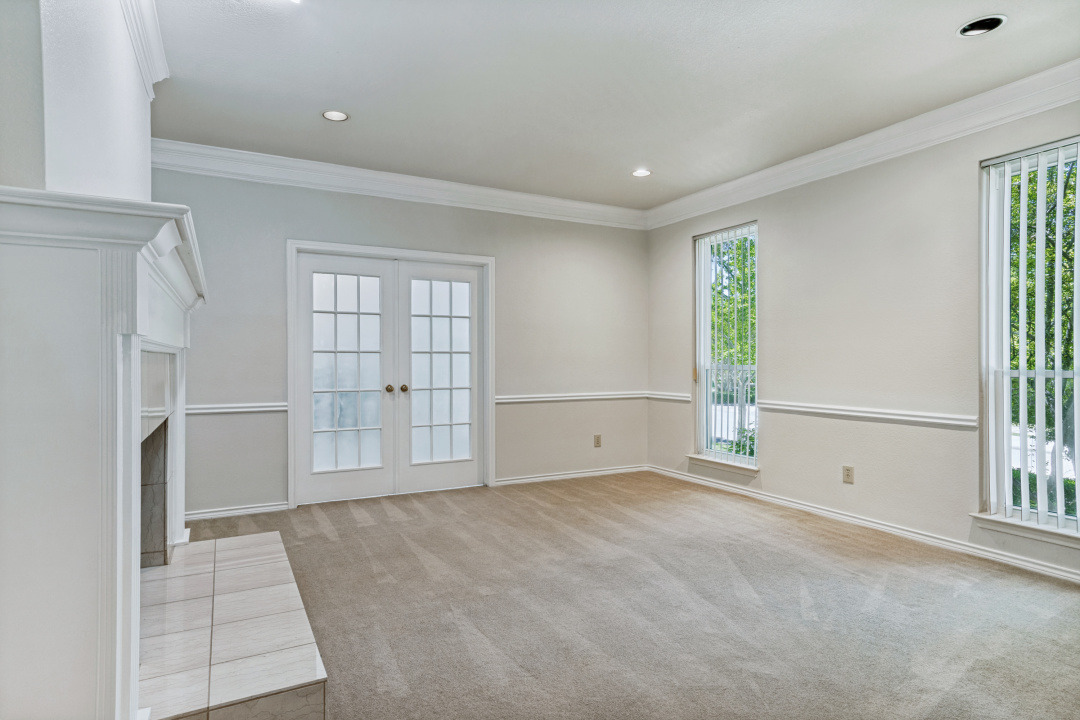 The Formal Study: Featuring floor-to-ceiling built-in bookcases and its own fireplace, this is the ultimate work-from-home sanctuary or a quiet library for a UTD student.