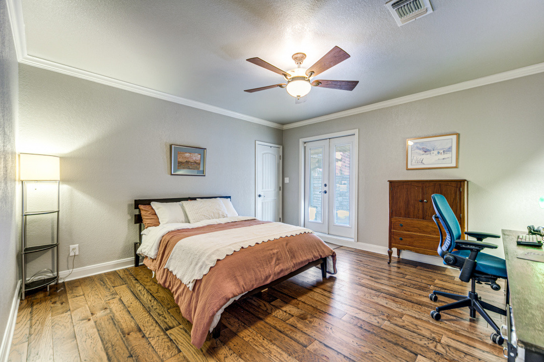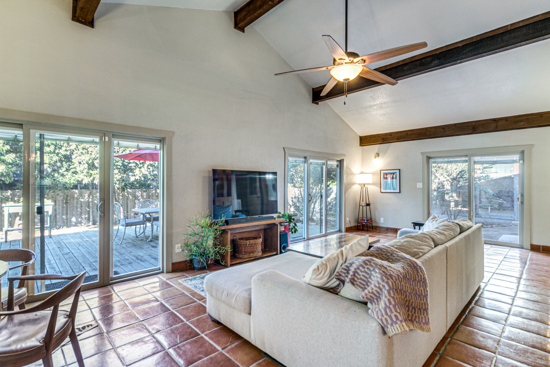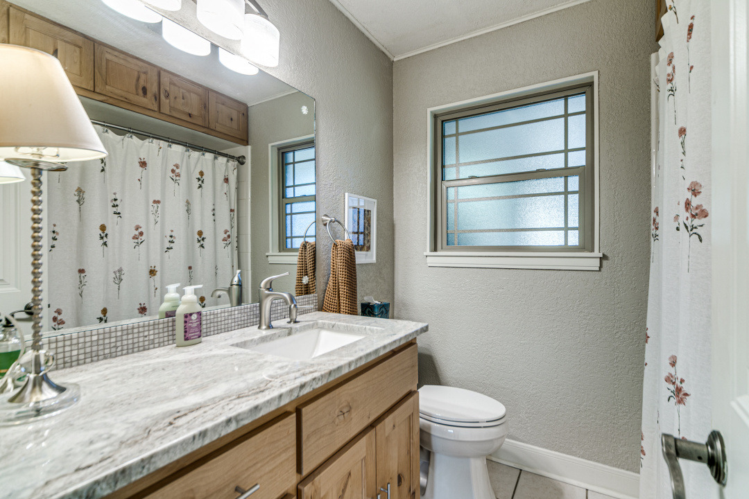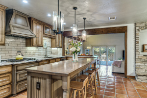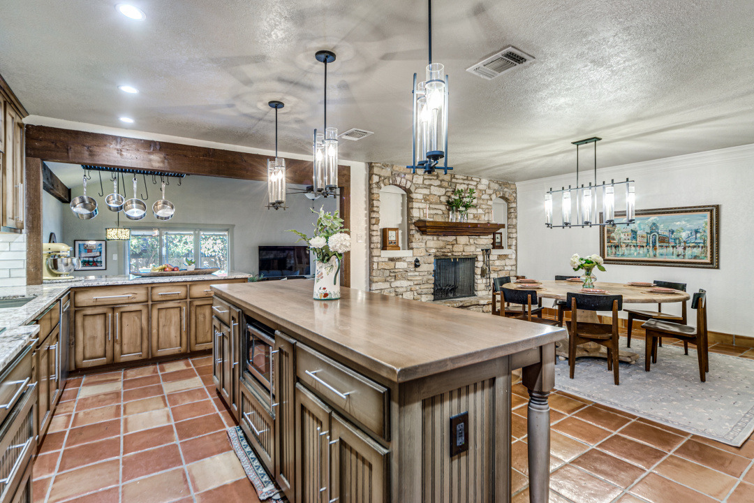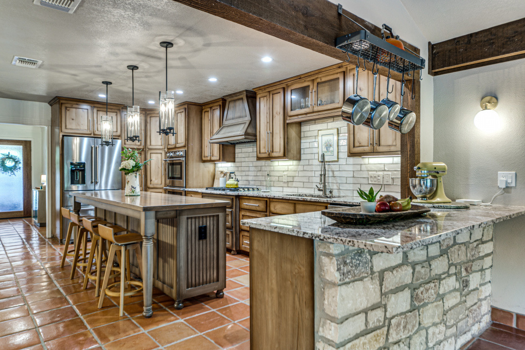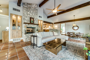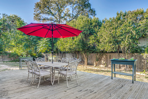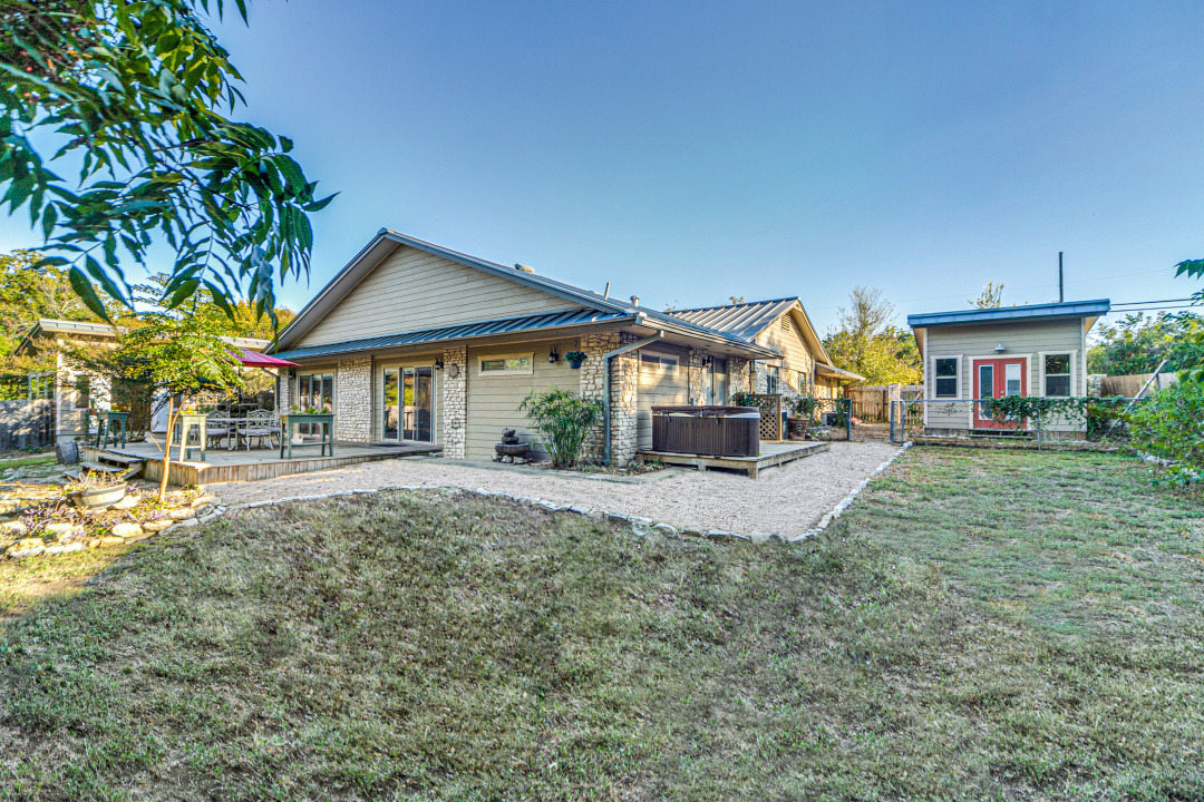 A true unicorn in Downtown Boerne — this stunning single-story home offers over 3,000 sq. ft. of updated living space just steps from Main Street. Featuring Saltillo tile, vaulted beamed ceilings, and a mid-century modern vibe, it blends character and comfort beautifully. The 4-bedroom, 4-bath layout includes a luxurious primary suite, spacious secondary bedrooms, and an incredible utility room with an island, sink, and endless storage. Enjoy outdoor living with multiple decks, a private hot tub area, and a charming front courtyard. Additional highlights include a metal roof, stone and cement siding, and versatile spaces like a flex room, potting shed, and aviary. Walk to Bakery Lorraine or your favorite downtown Boerne spots — this Oak Park gem truly has it all!