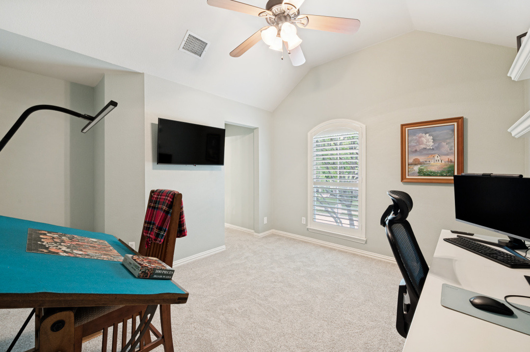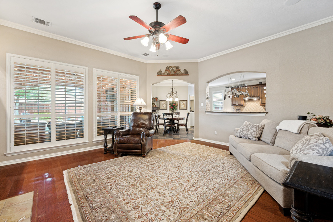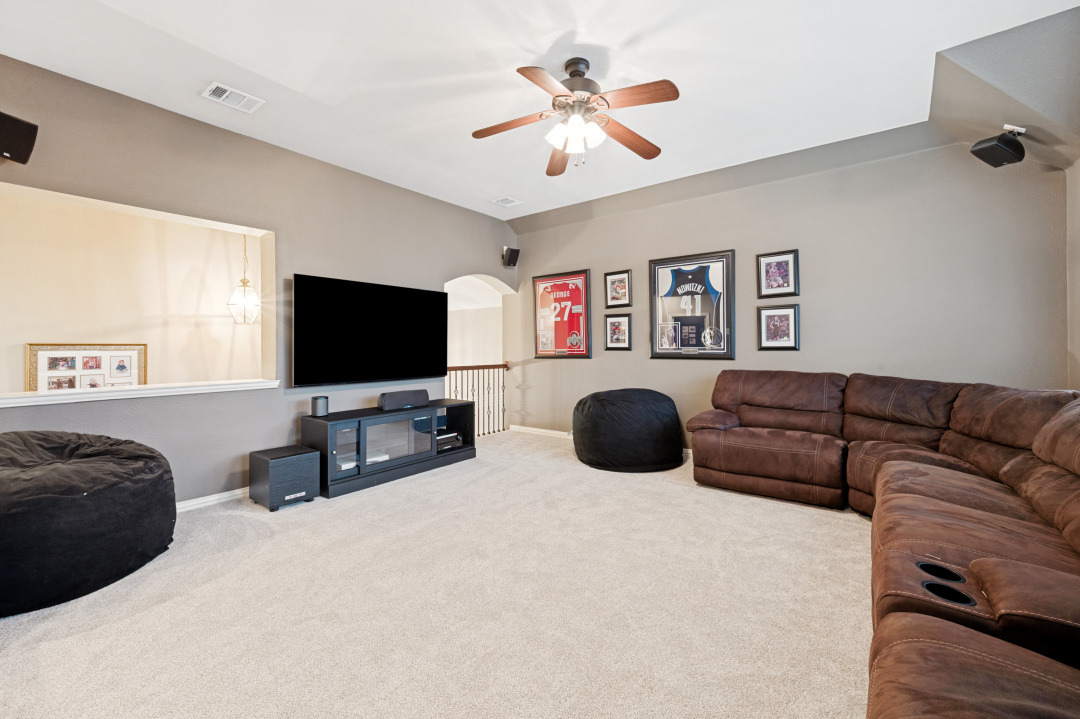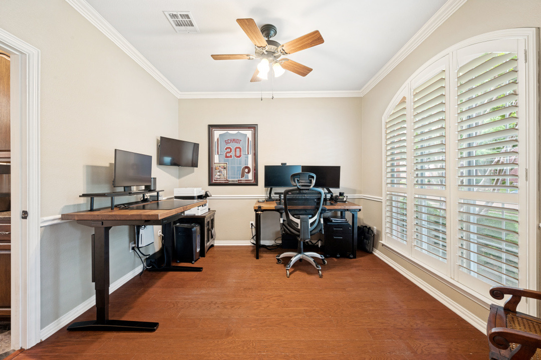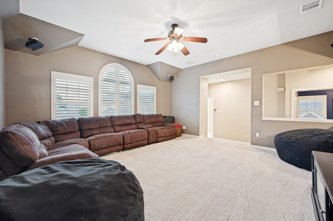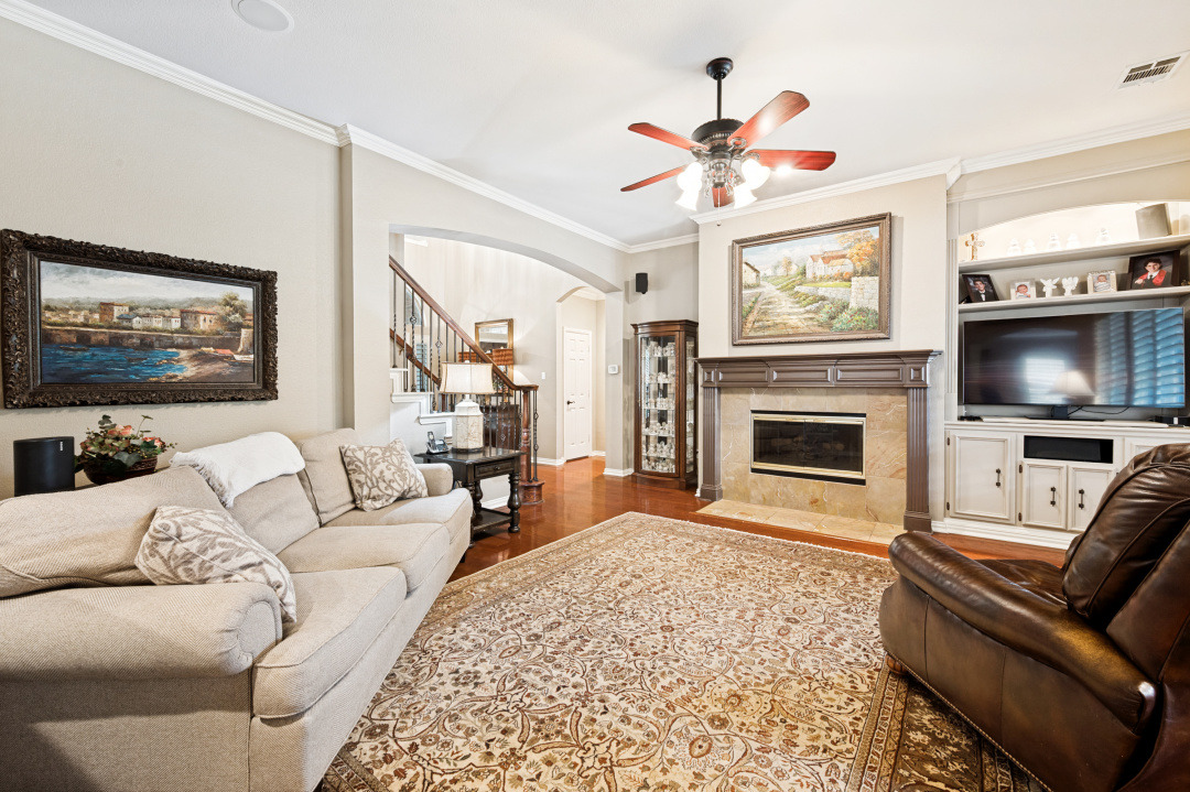 Your introduction to this beautiful North facing Highland home in Highlands of Russell Park begins with the professionally landscaped entry. The two story foyer opens to the formal living room and dining area. French pocket doors provide privacy so the dining room is also able to be used as an office. Rich hardwoods flow throughout the downstairs. The light and bright eat in kitchen features a large center island, granite counter tops, stainless steel appliances, big walk in pantry and butler’s pantry. Custom built ins and gas log fireplace are the focal point of the spacious family room which is open to the kitchen area for easy entertaining or shared family time. The primary bedroom suite includes a frameless walk in shower, vanity with dual sinks and granite counter tops, garden tub and large walk in closet. Generously sized game room, 3 secondary bedrooms and 2 baths are upstairs. The landscaped backyard has a resort style heated pool with water feature and spa. An oversized covered patio offers plenty of space for dining and entertaining. Electronic gate across the driveway opens up the yard and allows for an additional secured parking pad off the driveway. Recent updates include: Interior Paint 2026, Carpet 2026, AC Evaporator Coil 2026, Insulated Garage Door 2025, Fence and Gate Refresh 2025, Retaining Wall 2025, Garage Door Opener 2024, Roof 2023.