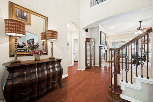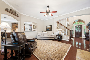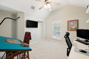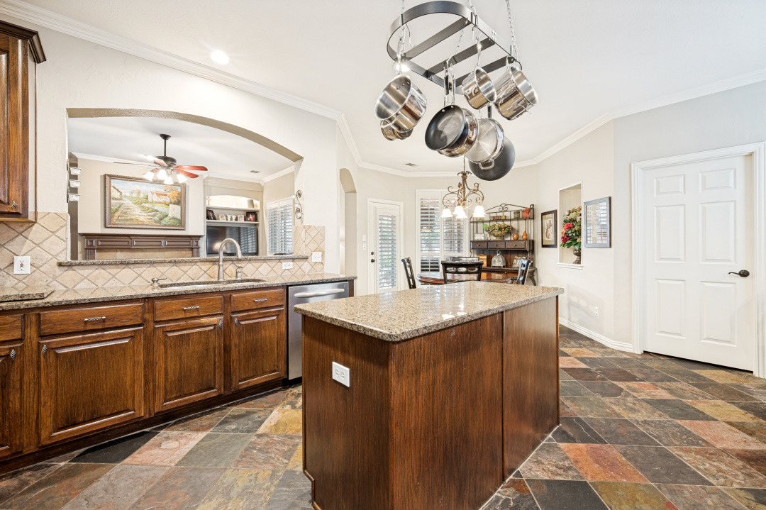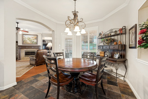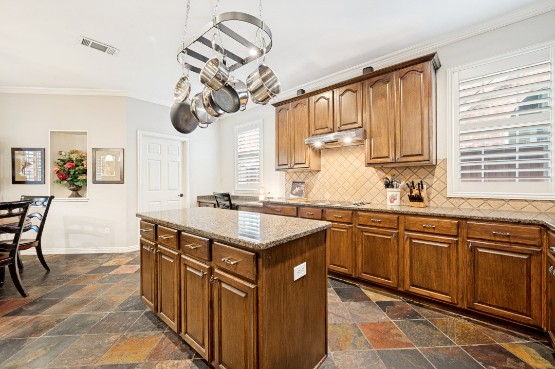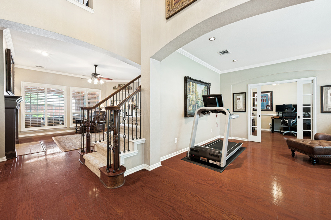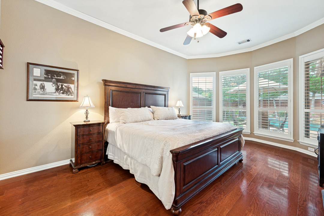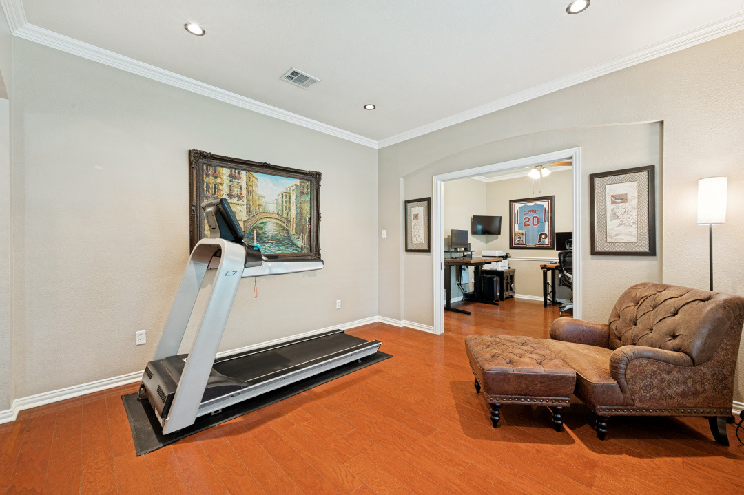 Your introduction to this beautiful North facing Highland home in Highlands of Russell Park begins with the professionally landscaped entry. The two story foyer opens to the formal living room and dining area. French pocket doors provide privacy so the dining room is also able to be used as an office. Rich hardwoods flow throughout the downstairs. The light and bright eat in kitchen features a large center island, granite counter tops, stainless steel appliances, big walk in pantry and butler’s pantry. Custom built ins and gas log fireplace are the focal point of the spacious family room which is open to the kitchen area for easy entertaining or shared family time. The primary bedroom suite includes a frameless walk in shower, vanity with dual sinks and granite counter tops, garden tub and large walk in closet. Generously sized game room, 3 secondary bedrooms and 2 baths are upstairs. The landscaped backyard has a resort style heated pool with water feature and spa. An oversized covered patio offers plenty of space for dining and entertaining. Electronic gate across the driveway opens up the yard and allows for an additional secured parking pad off the driveway. Recent updates include: Interior Paint 2026, Carpet 2026, AC Evaporator Coil 2026, Insulated Garage Door 2025, Fence and Gate Refresh 2025, Retaining Wall 2025, Garage Door Opener 2024, Roof 2023.