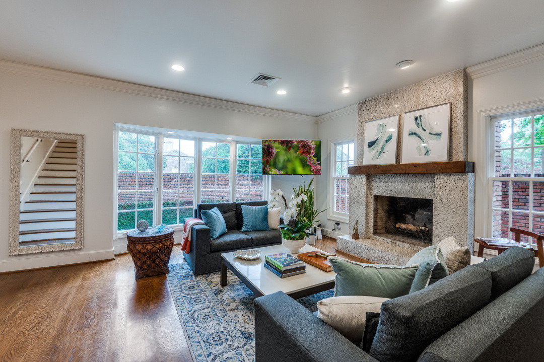 Unbeatable location—directly across from SMU and steps from the charm of Snider Plaza! 3400 Shenandoah Street offers the rare feel of a private residence within the exclusive Presidents House Condominiums. This beautifully updated corner unit features 5 bedrooms, 3.5 baths, and 3,715 SF of elegant living space filled with natural light, soaring ceilings, and luxury finishes including hardwood, travertine, and marble floors.