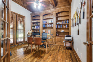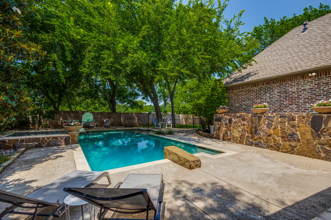 Stunning Custom Sanders Home in Prestigious Gated Golf Community – The Reserve at Bridlewood Nestled on a quiet cul-de-sac street in the exclusive, master-planned, gated golf course community of The Reserve at Bridlewood, this exceptional custom Sanders home offers a luxurious lifestyle with resort-style amenities. Residents enjoy access to two pools, five tennis courts, two playgrounds, an equestrian center, scenic hike & bike trails, and an award-winning golf course—truly a community with something for everyone. From the moment your drive up to this property and see the wraparound front porch you enter through the custom front door, you'll be captivated by the rich hardwood floors, detailed millwork, plantation shutters, and timeless neutral tones throughout. The home’s layout is ideal for both everyday living and grand entertaining. The main floor includes: a formal living room with fireplace, formal dining room with views of backyard. Spacious private study with custom built-ins Spacious primary suite featuring a sitting room or workout-second office space The chef-inspired kitchen is a dream, featuring top-of-the-line built-in appliances, an oversized refrigerator, a wine fridge, and generous counter space, breakfast room all overlooking a spacious family room with breathtaking views of the backyard oasis. A well-appointed laundry room with sink and built-ins, located next to a convenient half bath. Upstairs, accessed via secondary staircases, you'll find a large game room with a balcony overlooking the backyard retreat, dedicated media room. Four additional bedrooms and three full bathrooms, providing ample space for a growing family Step outside to your private paradise—a sparkling pool and spa, cabana outdoor living area with built-in grill, beverage center all surrounded by mature trees and lush green space. It’s a setting that feels like a permanent vacation right in your own backyard.