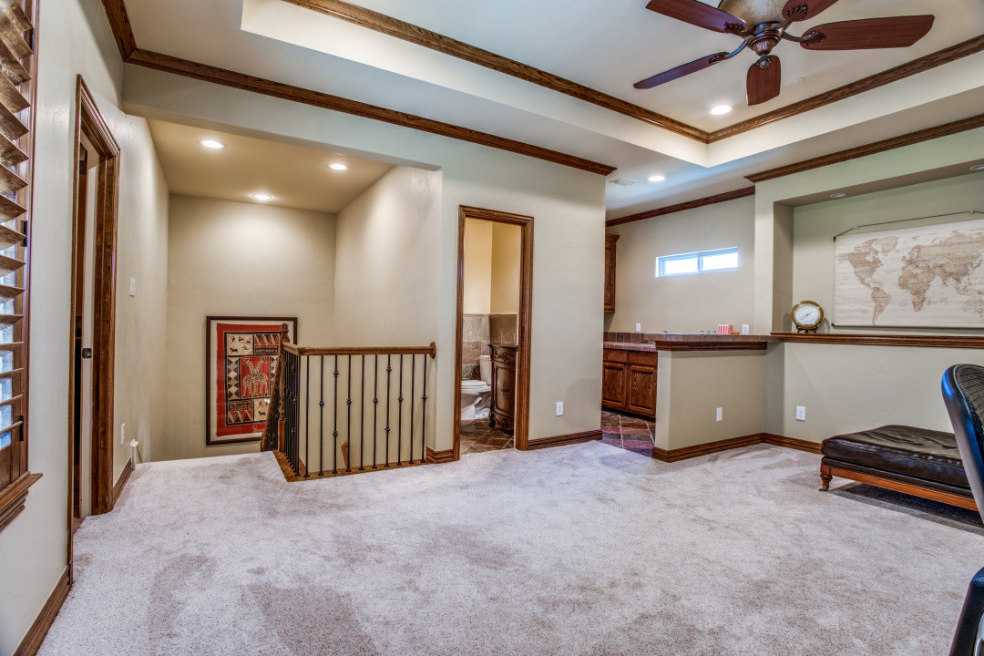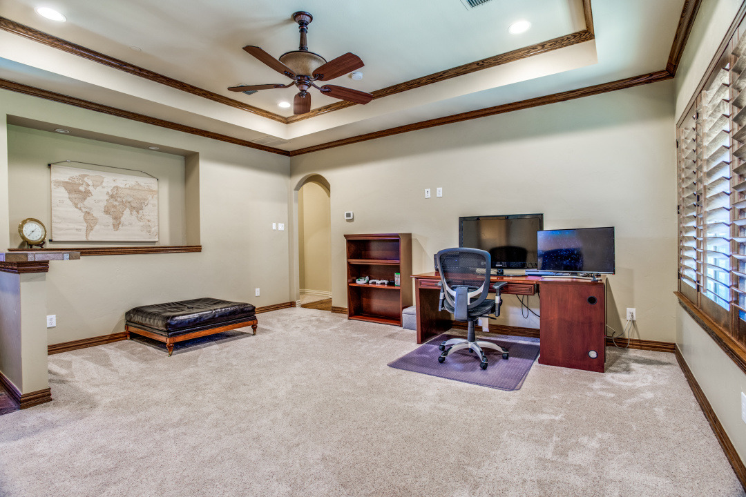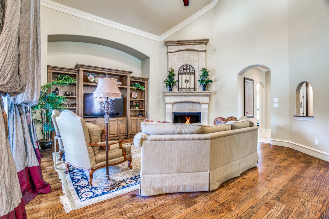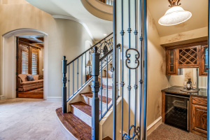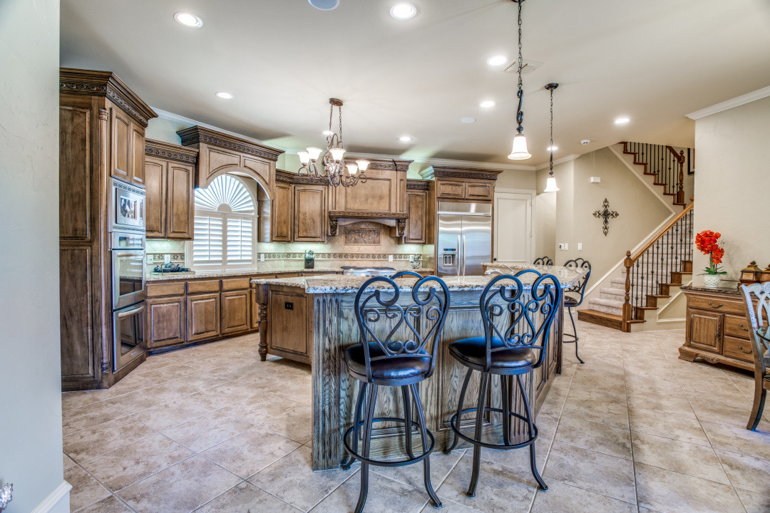 Stunning drive up to this brick and cast stone Hensley Custom Home! A commanding iron front door opens to a large dramatic foyer with travertine floors, to a beautiful spiral staircase w/wrought iron spindles. Executive Study with wood coffered ceilings, hardwood floors and built in bookshelves. Located off the foyer is a Wine Grotto. The gourmet Kitchen boasts premium granite counters, light stained cabinets with custom millwork and vent hood. Your Chef will enjoy the stainless steel appliances, Kitchen-Aid builtin refrigerator, double ovens,commercial 6 burner gas-cooktop. At the “Heart of the Home” this kitchen is central & opens to both Formal and Casual Dining and Family Room. This Great room has two story ceilings,a stunning double mantled cast stone fireplace and high stacked windows with pool views. The 2nd staircase leads Upstairs to 3 Bedrooms, Gameroom with full refreshment center, tech niche, Bi-level Media, which includes projector, screen,seating & 4 wall speakers. Private Motor Court, gated 3-car garage. Custom appointments,8” Baseboards and Plantations shutters throughout!