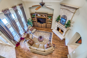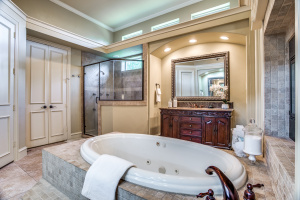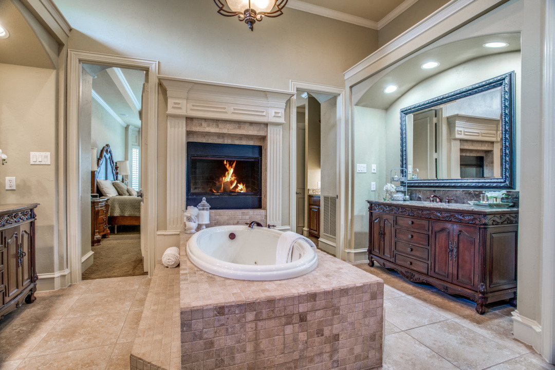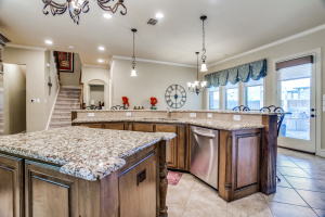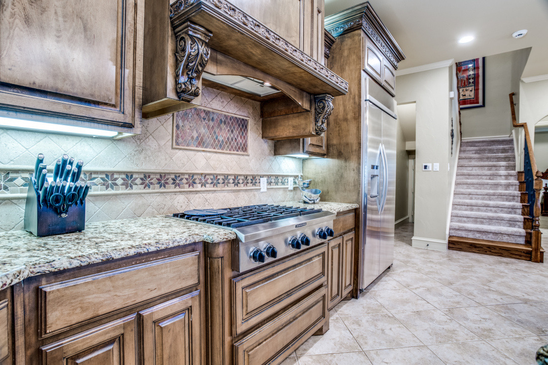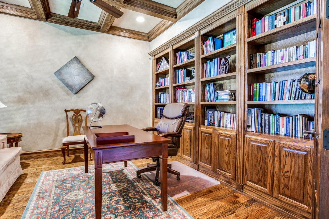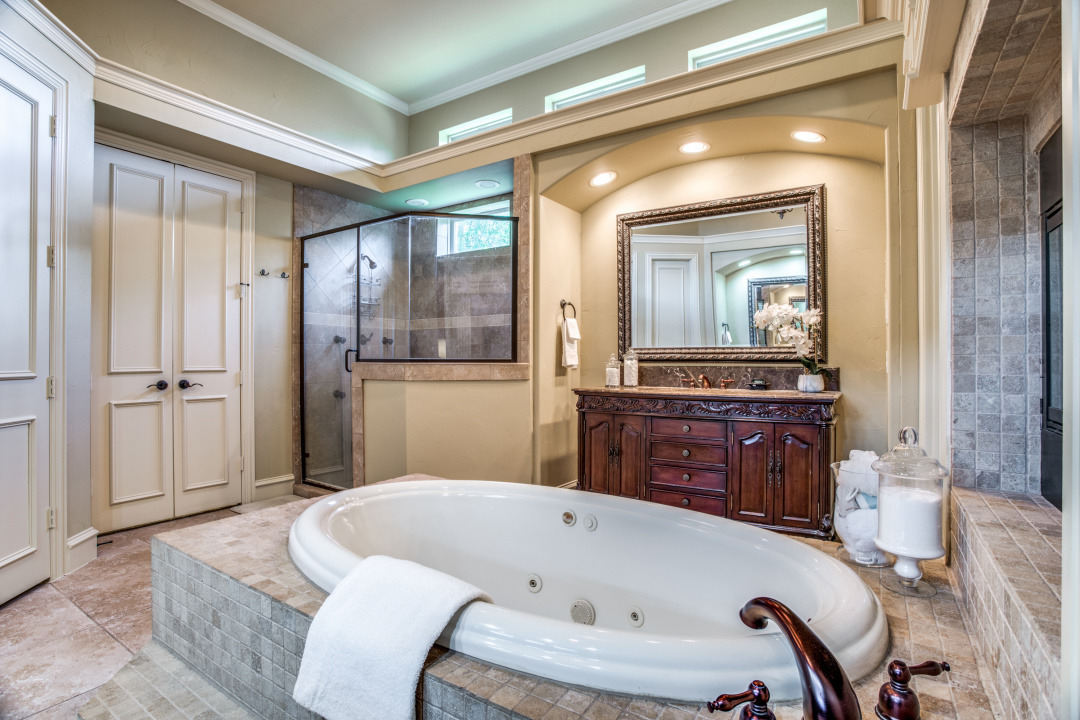 Stunning drive up to this brick and cast stone Hensley Custom Home! A commanding iron front door opens to a large dramatic foyer with travertine floors, to a beautiful spiral staircase w/wrought iron spindles. Executive Study with wood coffered ceilings, hardwood floors and built in bookshelves. Located off the foyer is a Wine Grotto. The gourmet Kitchen boasts premium granite counters, light stained cabinets with custom millwork and vent hood. Your Chef will enjoy the stainless steel appliances, Kitchen-Aid builtin refrigerator, double ovens,commercial 6 burner gas-cooktop. At the “Heart of the Home” this kitchen is central & opens to both Formal and Casual Dining and Family Room. This Great room has two story ceilings,a stunning double mantled cast stone fireplace and high stacked windows with pool views. The 2nd staircase leads Upstairs to 3 Bedrooms, Gameroom with full refreshment center, tech niche, Bi-level Media, which includes projector, screen,seating & 4 wall speakers. Private Motor Court, gated 3-car garage. Custom appointments,8” Baseboards and Plantations shutters throughout!