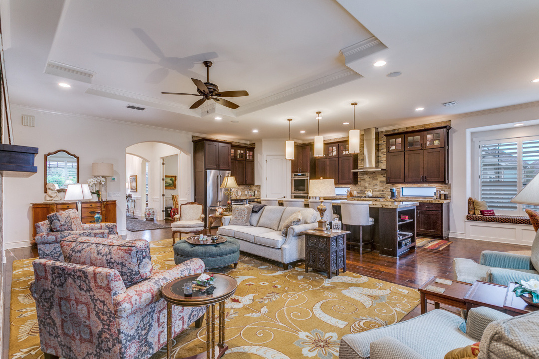 ought after Exclusive Gated, Age Restricted 55+ (Unit 1) neighborhood! This custom home boasts upscale amenities, handsome built-ins, elegant light fixtures/chandeliers, well thought-out floor plan for comfort & privacy. This is a meticulous home, and pride of ownership shines. Along with an open floor plan of the great room, large galley kitchen, and breakfast/morning room, there is a separate living room/study for your added enjoyment. The kitchen is perfect for preparing culinary delights which features gas cooking, an oversized island, double ovens & wine fridge & more. The spacious primary bedroom & bathroom with it's custom window seat, soaking tub, large shower & 2 walk-in closets are a dream. This very gently lived-in home is a must see. The carefully designed landscaped yard, and covered patio area faces a peaceful greenbelt, a delight for outdoor entertaining, birdwatching, or relaxing.