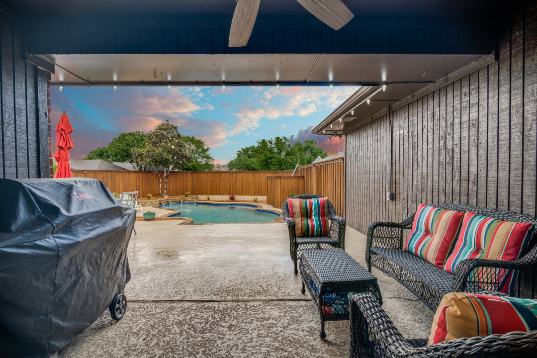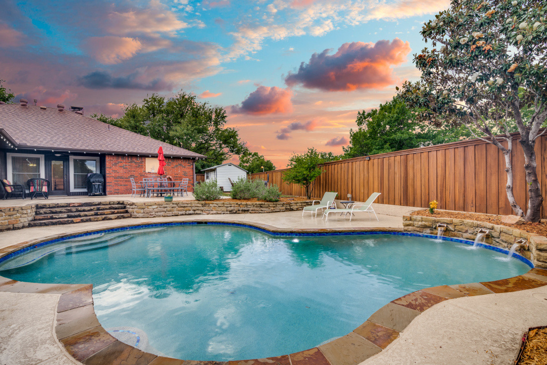 Pool Time is Here! Get ready to make a splash in this beautifully updated Wylie home, perfectly positioned on a corner lot! The backyard oasis features a sparkling updated pool, a covered patio, and ample space for outdoor entertaining. Whether you're hosting pool parties or simply enjoying a relaxing day by the water, this home has everything you need to make a splash! Inside, you'll discover a spacious 3-bedroom,2-bathroom layout, complete with a formal dining room boasting custom ceilings and two expansive living areas. One living room features a cozy full brick fireplace with gas logs, while the other showcases a wet bar - perfect for entertaining friends and family. The vaulted ceilings, lovely LVP wood floors, brand new stainless appliances, and granite countertops with tile backsplash all come together to create a truly luxurious atmosphere. The primary suite is a serene retreat, featuring an updated soaking tub, a separate tiled shower, and two generous walk-in closets. You'll appreciate the numerous updates throughout the home, including a newer HVAC, water heater, windows, board-on-board fence, and sprinkler system - just to name a few! This home is not only a great place to live, but it's also conveniently located within walking distance to Birmingham Elementary, rated 10 out of10! Additionally, it's just a short drive from downtown Wylie, offering easy access to local restaurants, shops, and entertainment. Don't miss your chance to own this incredible home! Contact us today to make this dream home a reality!