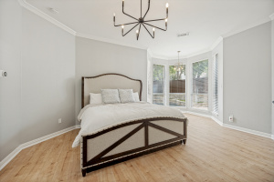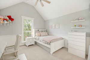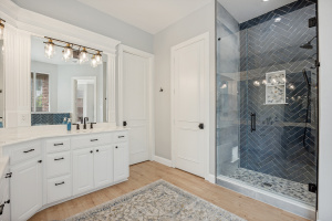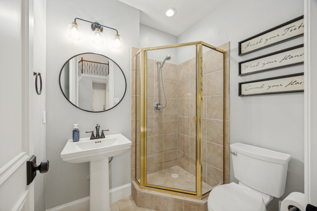 The primary suite offers a private retreat with an updated spa-like bathroom showcasing new flooring and modern hardware. Secondary bathrooms have also been upgraded, including the Jack and Jill bath with new sinks and fixtures, providing both comfort and convenience for family and guests.