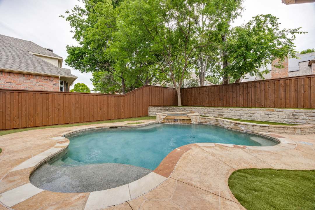 Step outside to your own backyard oasis, complete with a sparkling pool and relaxing hot tub—perfect for enjoying Texas summers. The addition of low-maintenance turf ensures a beautiful yard year-round without the upkeep.