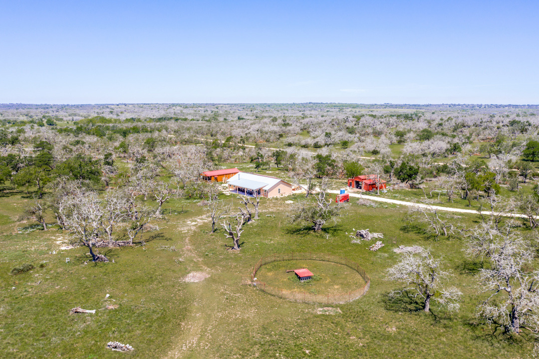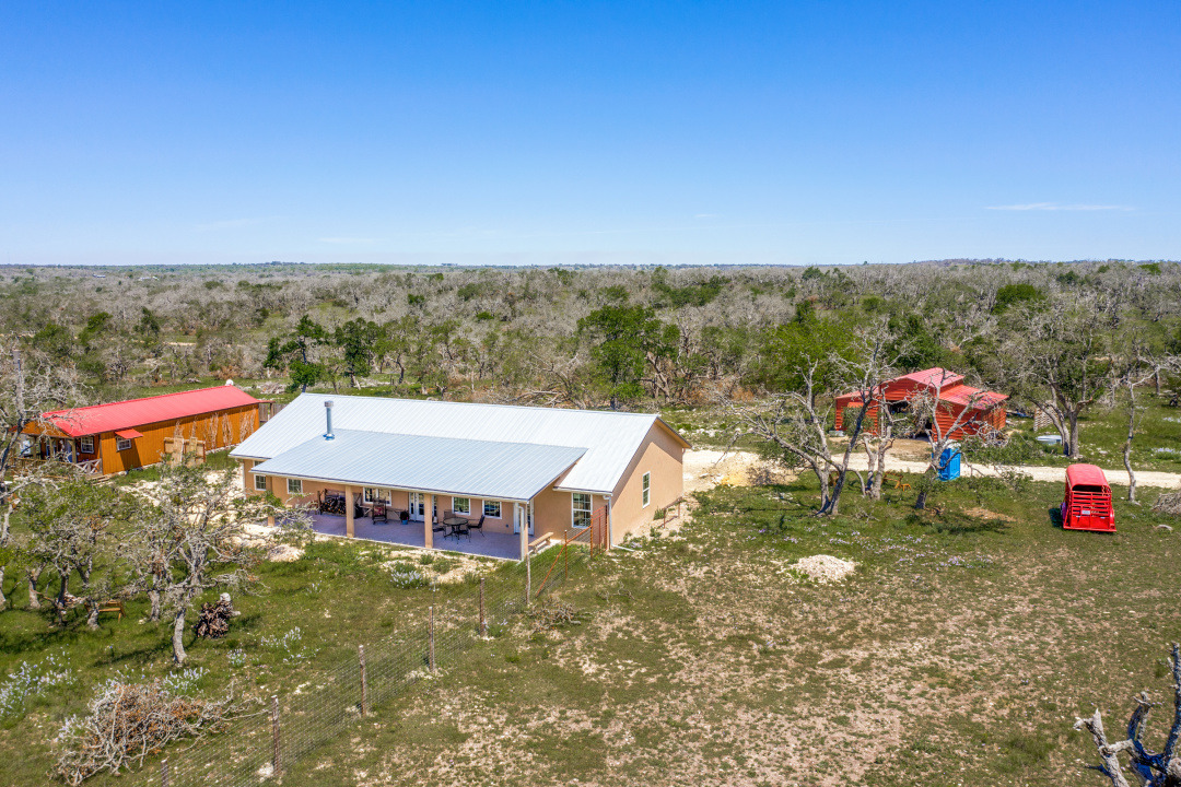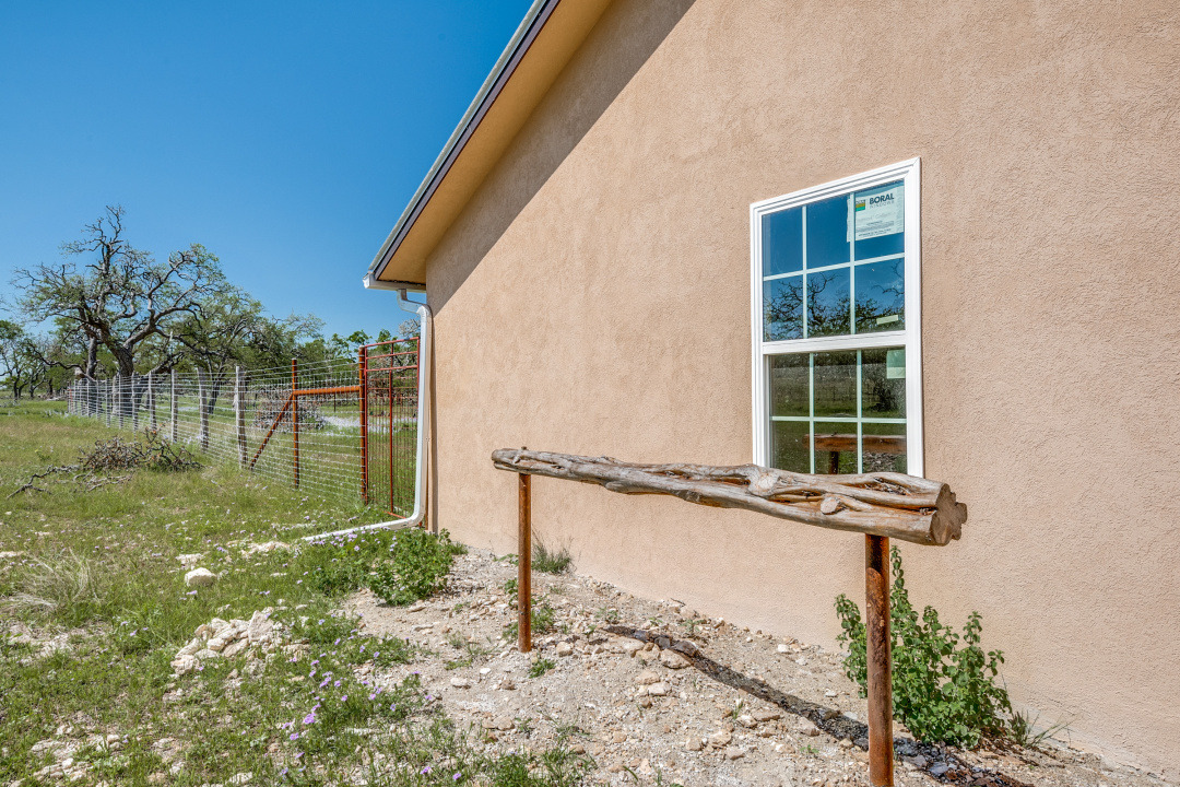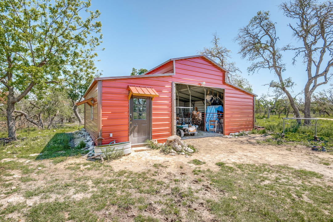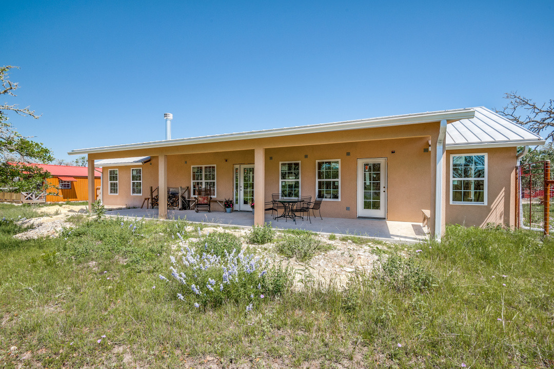 Located approximately 20 minutes from Fredericksburg and 30 miles from Kerrville, this 35.3 ± acre tree-studded, gently rolling, hill country property offers three existing structures: a home, a cabin and a modular barn. (Home is 2,016 ± Sq. Ft., Cabin is 704 ± Sq. Ft.). The newly constructed transitional home features vaulted ceilings and open structure adds to the southeast facing living area full of light from large window as the sun rises and sets. The consistent breeze flows through the home minimizing the use of AC. The primary bedroom has access to the covered porch, large walk-in closet and bath with a claw foot tub. The two additional bedrooms are bright and have large closets. There is a spacious guest bath and half-bath in the mud room with a utility sink. The large living area has a stone fireplace. The kitchen opens to the living area. All cabinets are solid wood, have extra conveniences built in and a walk-in pantry. The large high fenced yard provides a perfect setting for enjoying an evening on the oversized porch. There are high quality ceiling fans in each room and track lighting in the living area to focus on your art. The house has two large, insulated attics with pull down step access. There are two HVAC systems. Gutters have fine screens to support a water capture system in the future. The cabin is climate controlled, with a galley kitchen, one and a half baths, front and back porches. Ideal for an office, studio, guest lodging or B&B. The modular barn has a storage room and open areas for pens. The property provides a well, septic and peeled cedar ranch fencing with gates and low perimeter barbed wire. Ag exempt. Property is being sold as-is.