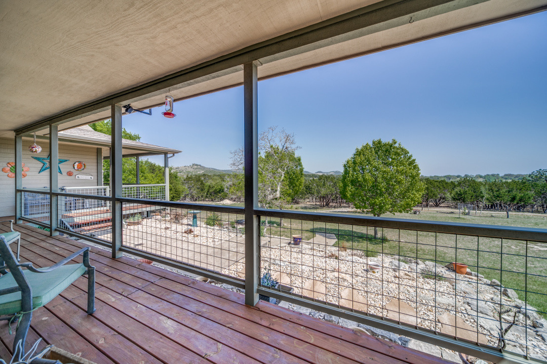 VIEWS, VIEWS & more VIEWS! Unrestricted- No HOA dues or City taxes. - This beautiful home and property is nestled on just under 7 private acres and offers endless possibilities! Home is a 3/2.5 with a downstairs, (similar to a walk out basement) unfinished garage equipped with heat & air and is currently being used as a craft room. Could be finished out into a huge game room or another master suite. Inside amenities include a rock fireplace, beautiful wood cabinets in the kitchen, separate dining area, breakfast bar & eat in kitchen. Wood floors on the main floor...The property is completely fenced with a storage building and an open metal building that could be used for horses, etc. There is also a metal building surrounding the 2500 gallon water storage tank. Don't let your clients miss the views from your private deck or from the back of the property. Come see what the stars look like over the hills & the "fire in the sky" sunsets on this gorgeous, private get-a-way!