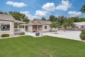 The primary suite is located on the main level and offers backyard access, double vanities, dual closets, soaking tub, and walk-in shower. The guest house offers 1 bedroom and 1 bath, ideal for guests or as a rental. Outdoor living includes covered patios, firepit, and covered bar/grill area overlooking a spacious backyard with room for a pickleball court.