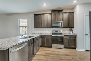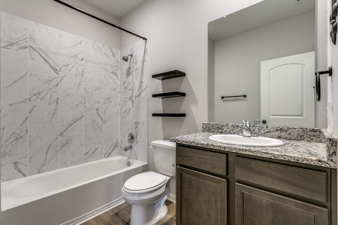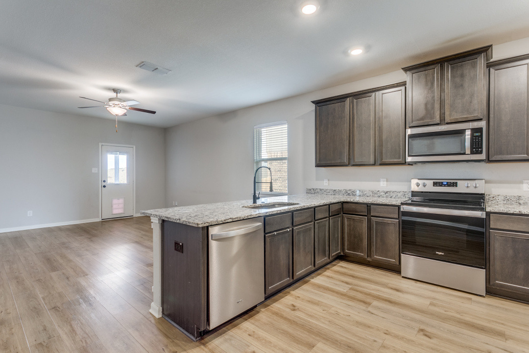 Gorgeous wood laminate floors throughout main living areas, granite kitchen overlooks spacious family room. Alarm system with cameras, 2in blinds, and ceiling fans installed throughout!