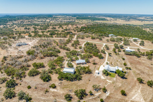 Beautiful new LVP flooring just installed throughout the home. Amazing deal on this 1867 sq ft house & 60x40 Barndominium w/2 separate apartments (616 sq ft each) on 4.01 Acres. Discover your piece of paradise in the heart of Texas Hill Country with this extraordinary 4.01 acre property in Fredericksburg. Low taxes with an Agricultural exemption provided by Black Buck deer and Longhorn Cattle in the subdivision. Farmhouse with a soaring 26' vaulted ceiling, offering 1,867 square feet of living space is tucked back off of the road for privacy. The kitchen is a chef's delight, with knotty pine cabinets and granite countertops, perfect for culinary adventures. The spacious primary suite has a dual vanity, a separate shower and soaking tub, and a generously sized walk-in closet. Two additional bedrooms provide ample space for family or guests, sharing a full bath. No carpet in the house. What sets this property apart is the versatility it offers. In addition to the farmhouse, there's a separate barndominium behind it, with (2) joined full apartments with lofts, making it ideal for multi-generational living or for your guests. No short-term rentals. 60 x 40 Barndominium has extra room in the garage with RV hookups, making it perfect for RV enthusiasts or additional storage. Metal roof on barn and house for low maintenance. The backyard features a dog run, providing a safe and spacious area for your furry companions to enjoy. As a wine enthusiast's dream, you'll be surrounded by a multitude of renowned wineries. The best of both worlds awaits with the vibrant charm of town life and the serenity of nature at your doorstep, complete with deer sightings. Conveniently located between downtown Fredericksburg and Johnson City. Whether you seek a private oasis or a retreat for your loved ones, this property provides endless possibilities.